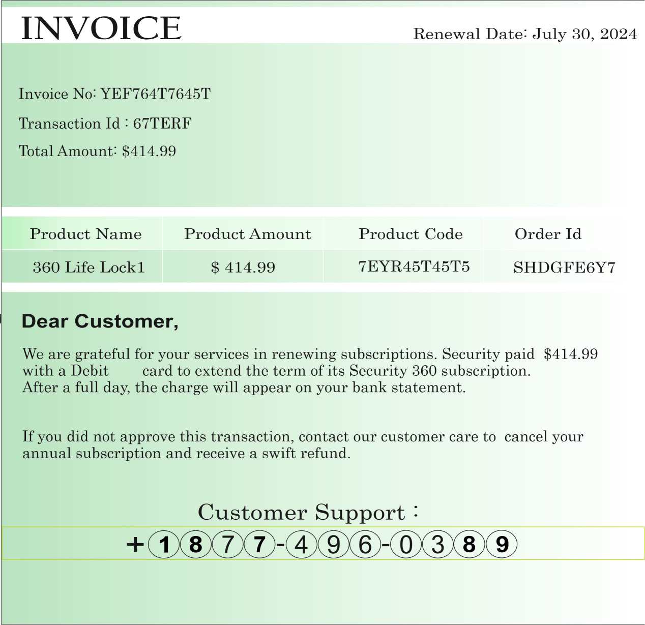 Email samotný nepredstavuje riziko, obsahuje len akýsi pokus o fakturovanie. Nie je to ani faktúra so všetkými náležitosťami, ktoré musí spĺňať. Cieľom je zaujať používateľa a donútiť ho zaplatiť za službu. Tá sa mu má podľa informácie z emailu automaticky obnoviť. To sa ale nestane, pretože takúto službu si neplatí. Teda je potrebné zavolať na číslo na bližšiu konzultáciu.