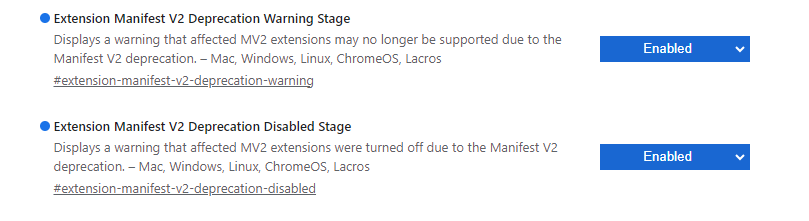 [HKEY_LOCAL_MACHINESOFTWAREPoliciesGoogleChrome] „ExtensionManifestV2Availability“=dword:00000002