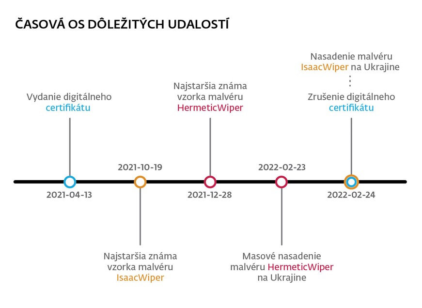 - 23. februárazasiahla viaceré ukrajinské organizácie ničivá kybernetická operácia, pri ktorej bol použitý malvér HermeticWiper (spoločne s malvérom HermeticWizard a MermeticRansom). Tento kybernetický útok predchádzal ruskej vojenskej invázii, ktorá prišla o niekoľko hodín.