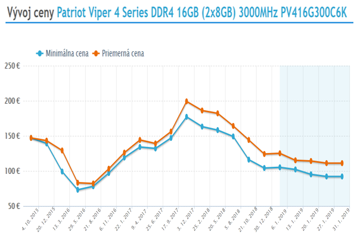Našťastie, cena pamätí v posledných 12 mesiacoch znova začala klesať a dnes 16 GB DDR4 kúpime za zhruba 120 eur. Zostupný trend by mal pritom pokračovať počas celého roka a potenciálne sa môžeme dostať možno aj na 80 či 90 eur.