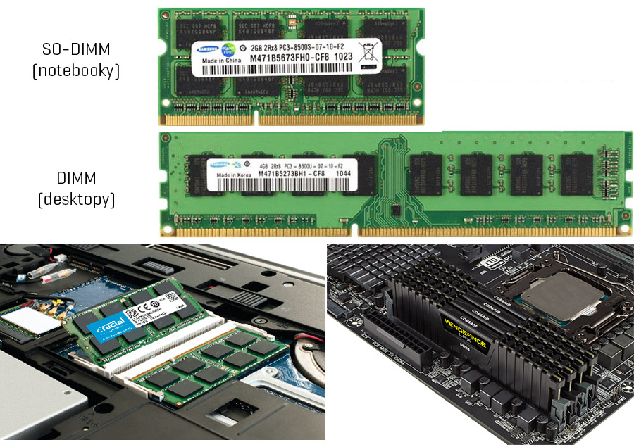 Toto označenie sa týka fyzickej veľkosti pamäťového modulu z hľadiska dĺžky. Variant DIMM je pre stolné počítače, variant SO-DIMM pre notebooky. Často sa s týmto označením ani nestretnete, pretože e-shopy radšej pamäte rovno rozdelia na „pamäte pre PC“ a „pamäte pre notebooky“. Komplikáciu to robí len v prípade, že si skladáte malý počítač do dlane, pretože ten používa malé základné dosky, do ktorých sa osadzuje notebookový SO-DIMM.