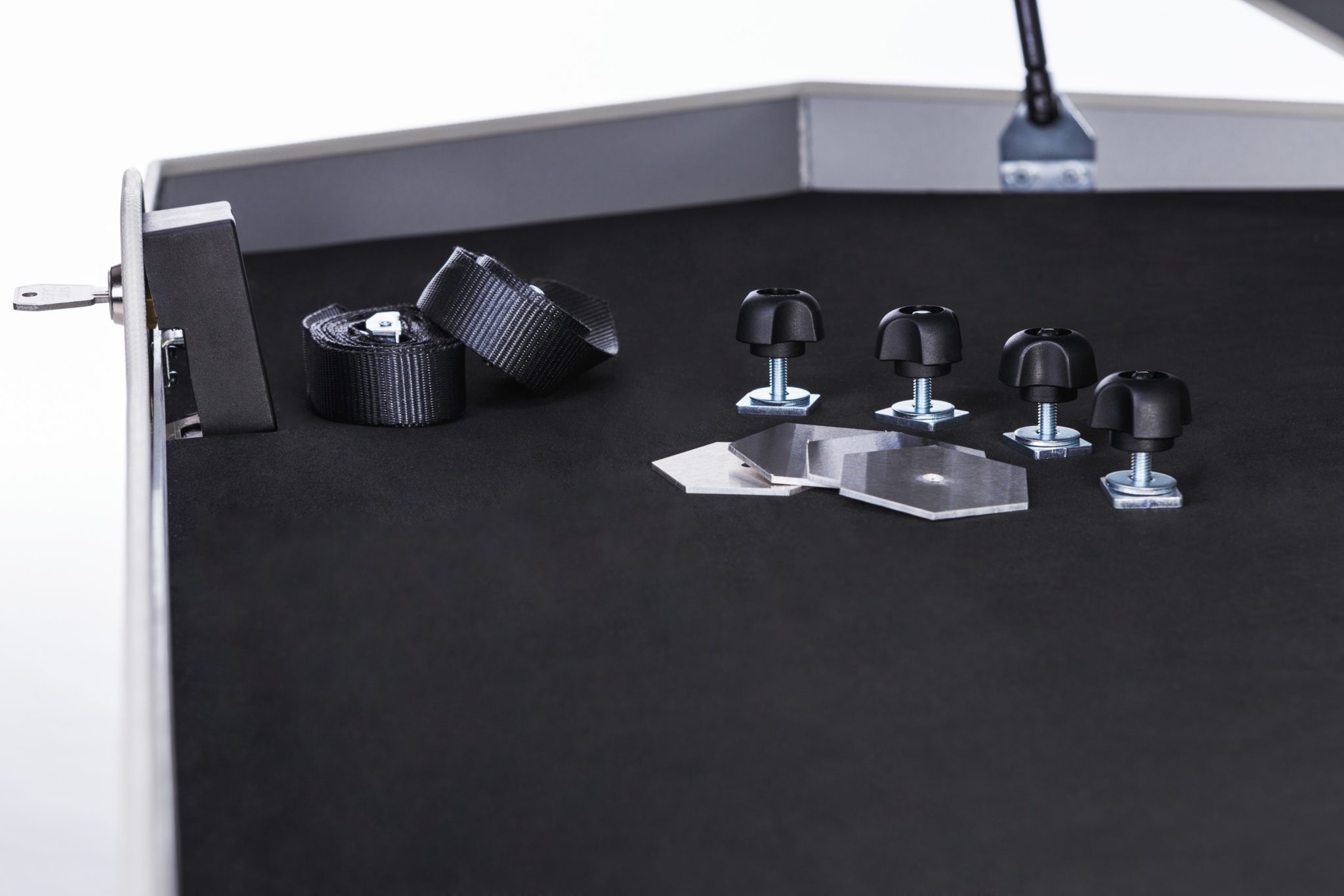 Technické špecifikácie: Hmotnosť: 24 kg Rozmery- d×vך: 222 × 30 × 72 cm Materiál: hliník Objem: 330 litrov Farba: hliníková / čierna Ukotvenie: extra pevné T-REX na rýchlu montáž dodávané v balení Uzamykanie: neviditeľná centrálna trojbodová zámka Nosnosť: 100 kg Záruka: 10 rokov Orientačná cena tohto boxu je 1300 Eur. Ak si objednáte box priamo na autosalóne, tak ušetríte viac ako 300 eur.Podobné články