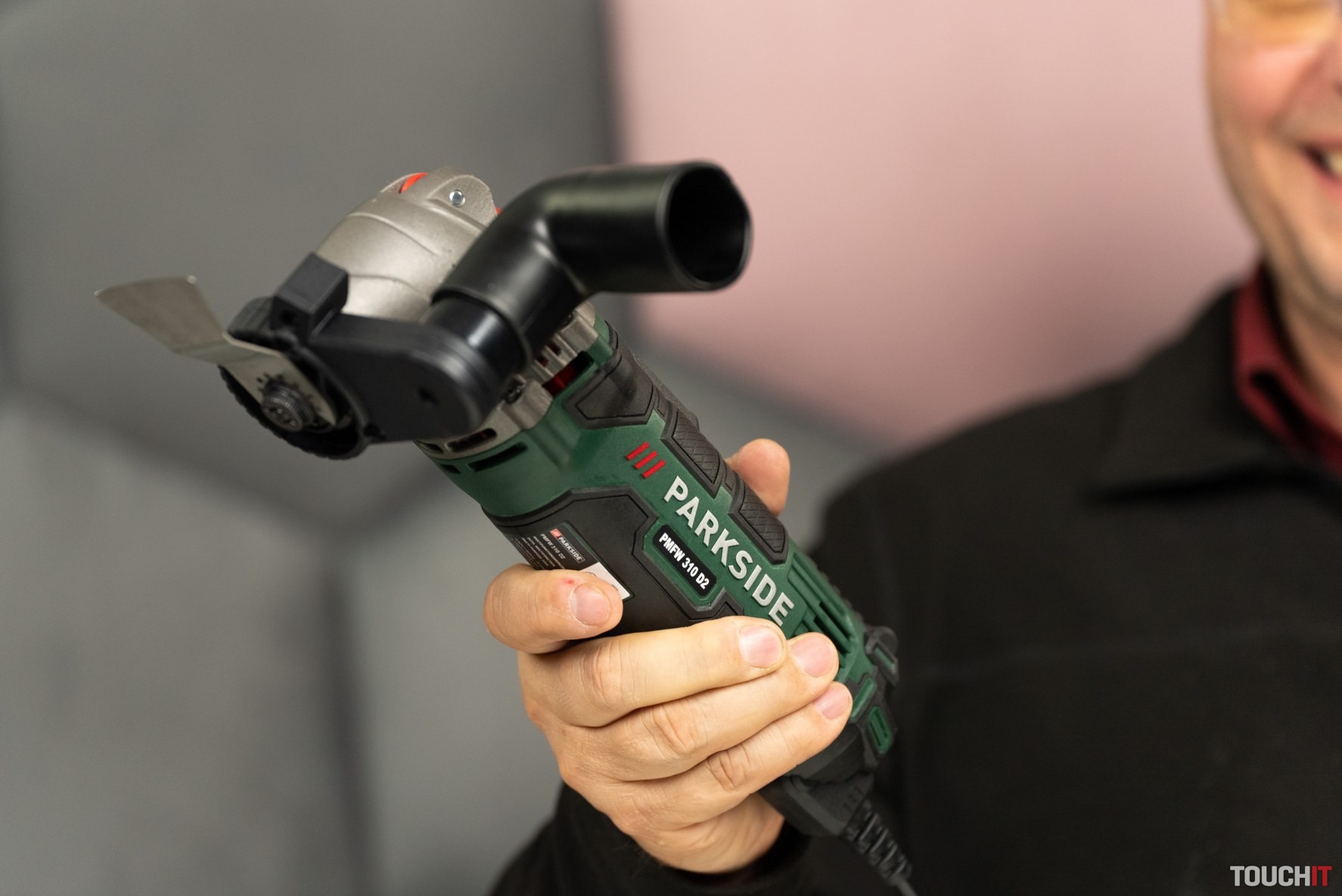 Aby ste v čistej domácnosti nenarobili viac škody ako osohu, môžete na tento nástroj pripojiť adaptér na odsávanie prachu napr. pomocou vysávača. Toto multifunkčné náradie sa ľahko drží v ruke, má ergonomický tvar s mäkkým držadlom a robustnou kovovou hlavou.
