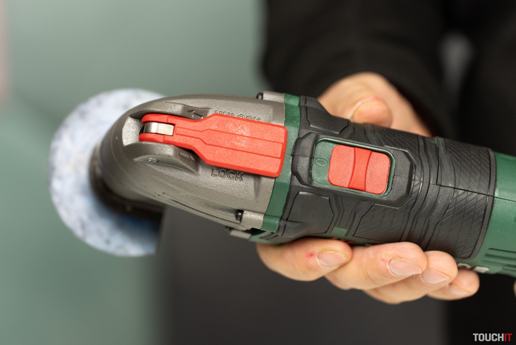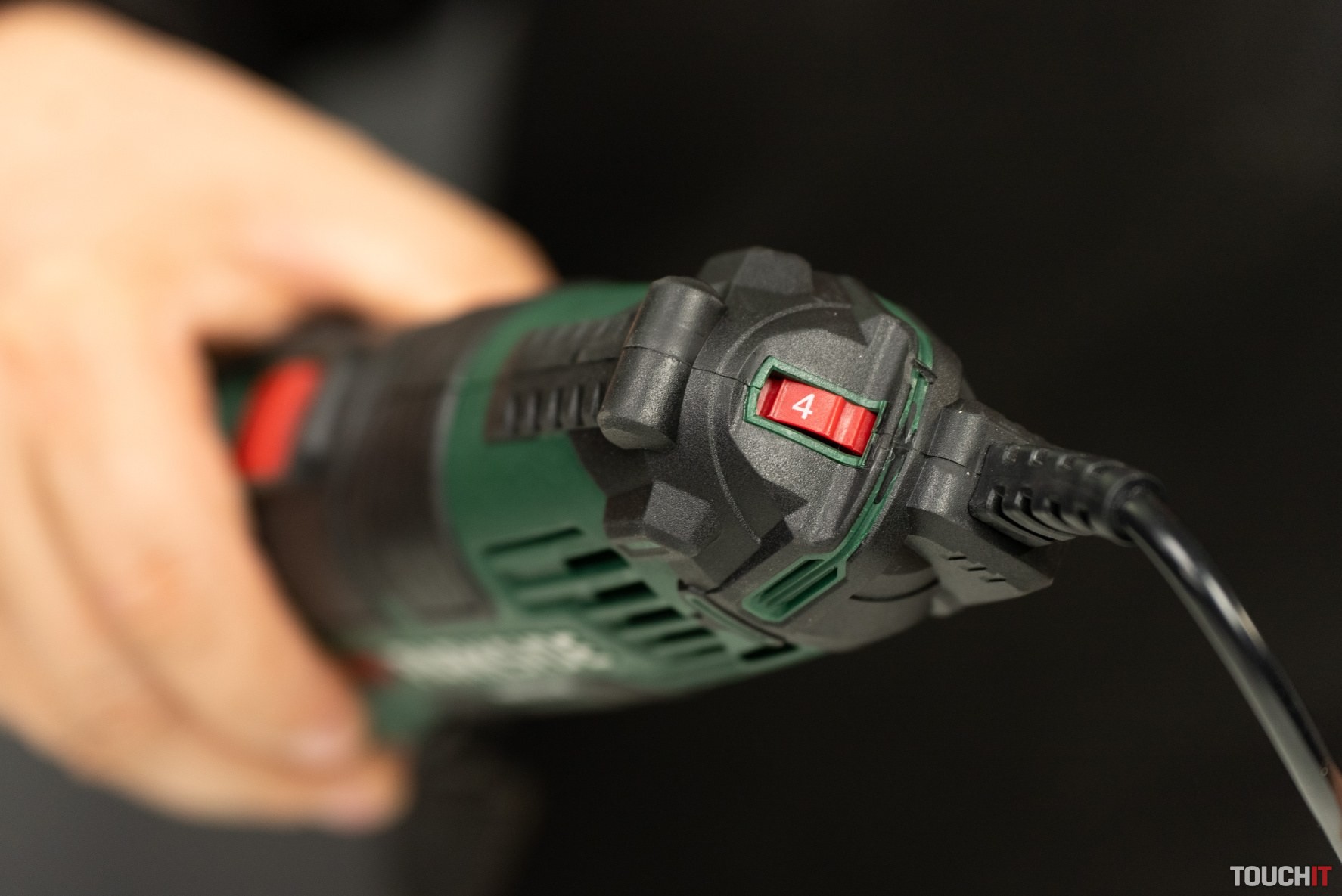 Pomocou prvku v zadnej časti planulo nastavujete rýchlosť kmitania. Výhodou je aj beznástrojová výmena príslušenstva. Nepotrebujete teda tradičný imbusový kľúč, náradie vymieňate uvoľnením pridržiavacej páčky.