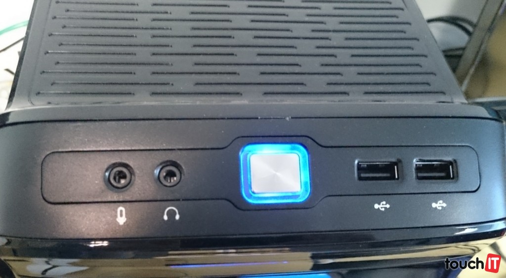 Počítač má úzky dizajn a niektoré porty sú vyvedená na predný panel a na hornú zošikmenú hranu. Ak sa bavíme o multimediálnom počítači, chýbali nám USB 3.0 porty. Na spomínanej hrane sú totiž len dva USB 2.0 porty. Rýchlejšie porty sú klasicky umiestnené v zadnej časti skrine. Je síce pekné, že výrobca pripravil panel pre rôzne formáty pamäťových kariet na prednej strane, no viac by sme ocenili aspoň jeden USB 3.0 port na pripojenie externého HDD podporujúci tento štandard.
