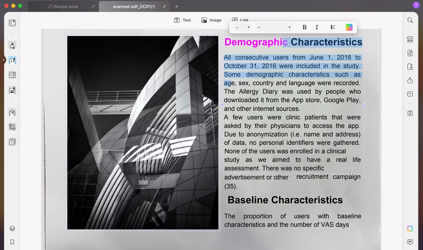Asi najpoužívanejšou funkciou UPDF je úprava PDF dokumentov. Tento nástroj možno ovládať viac-menej rovnakým spôsobom ako Pages alebo Microsoft Word. Dá sa použiť najmä ak vy ste chceli vedieť ako pridať text do PDF, čo je veľmi praktické napríklad pri vypĺňaní formulára. Obrázky a odkazy sú tiež kompatibilné, a to všetko bez skreslenia pôvodného formátu súboru. Potom môžete svoj upravený obsah uložiť vo formáte PDF.