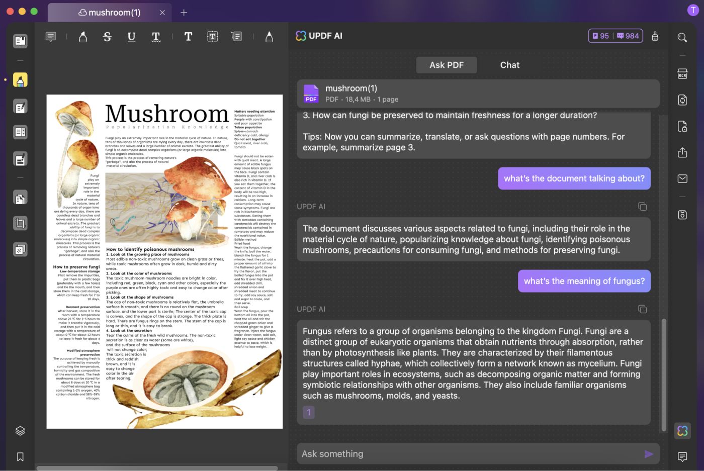 UPDF Pro samozrejme ťaží aj z funkcií s umelou inteligenciou. Tieto umožňujú:
