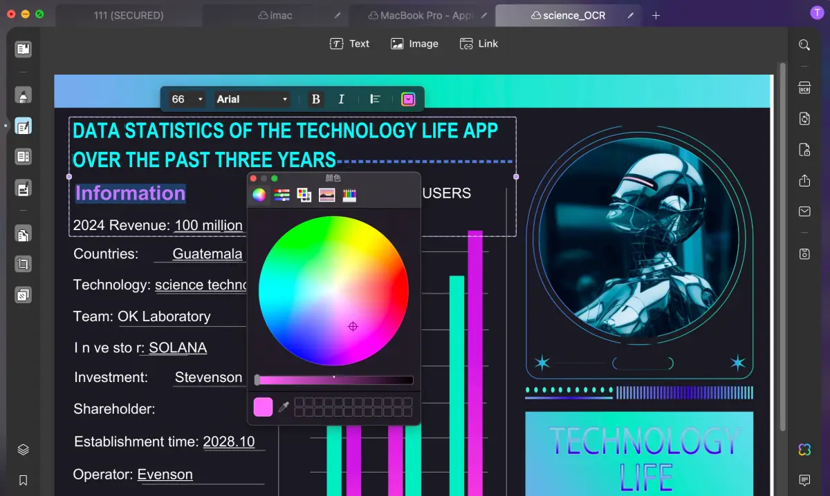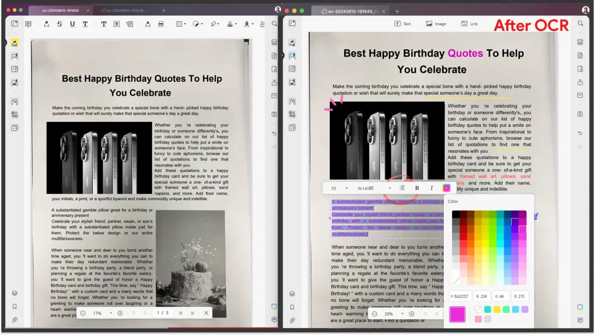 UPDF je tiež výkonný nástroj na úpravu súborov, ktorý umožňuje používateľom upravovať text, meniť obrázky, upravovať adresy URL a dokonca pridávať do dokumentov vodoznaky. Môžete dokonca zmeniť farbu pozadia, aby bol dokument živší.