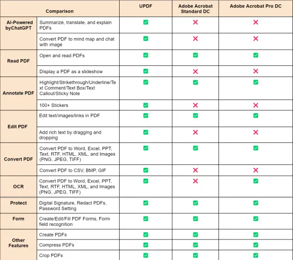 Ak hľadáte lepšiu alternatívu k Adobe Acrobat, UPDF môže byť dobrou voľbou. Rozdiely medzi Adobe Acrobat Pro a UPDF nájdete nižšie.