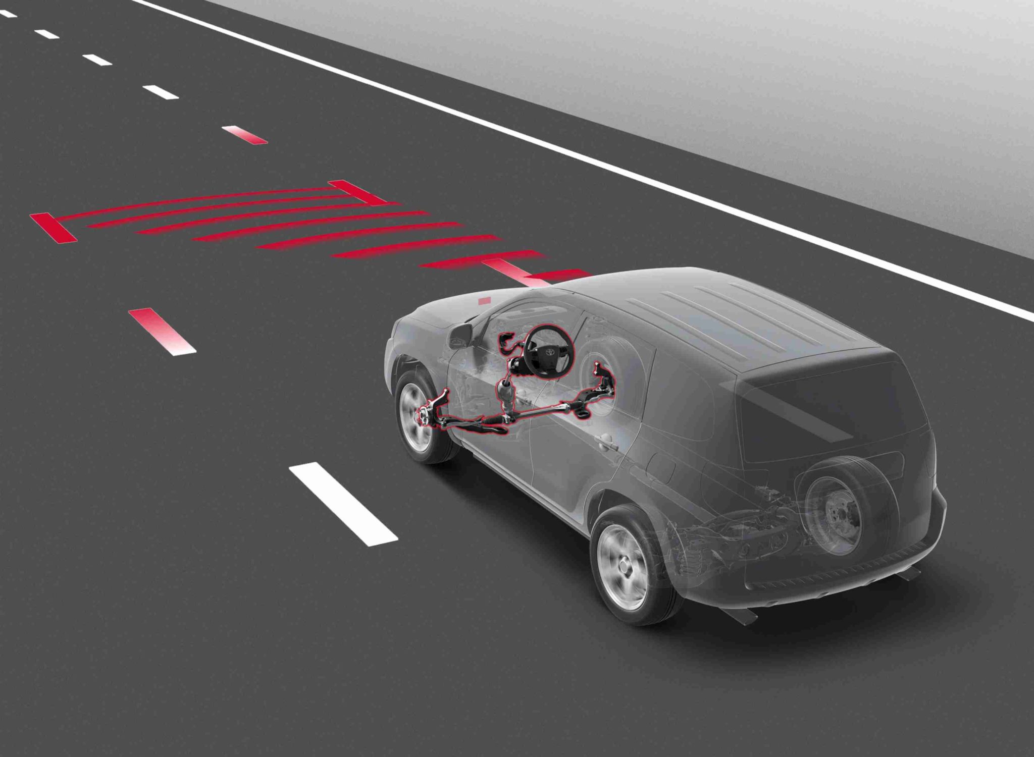 Varovný systém nežiaduceho vybočenia z jazdného pruhu využíva kameru na čelnom skle na sledovanie smeru jazdy vozidla medzi vodorovným dopravným značením jazdných pruhov na povrchu vozovky. Ak usúdi, že vozidlo sa chystá vychýliť zo svojho jazdného pruhu bez použitia ukazovateľa zmeny smeru jazdy, systém spustí poplašný signál a na multifunkčnom informačnom displeji rozsvieti výstražné svetlo. Ak sa vozidlo napriek tomu stále pohybuje mimo vyznačeného jazdného pruhu, použije jemnú silu na otáčanie volantu, a pomôže tak vodičovi vrátiť vozidlo do pôvodného smeru jazdy.
