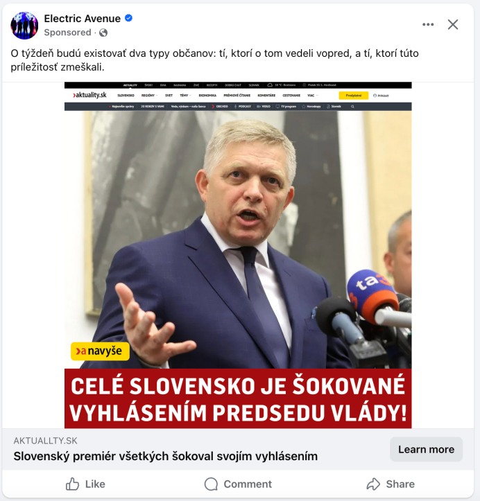 Podvod sa začína cez sponzorované reklamy na sociálnych sieťach, často s emotívnymi titulkami „Celé Slovensko je šokované vyhlásením predsedu vlády!“ a fotografiou premiéra SR.