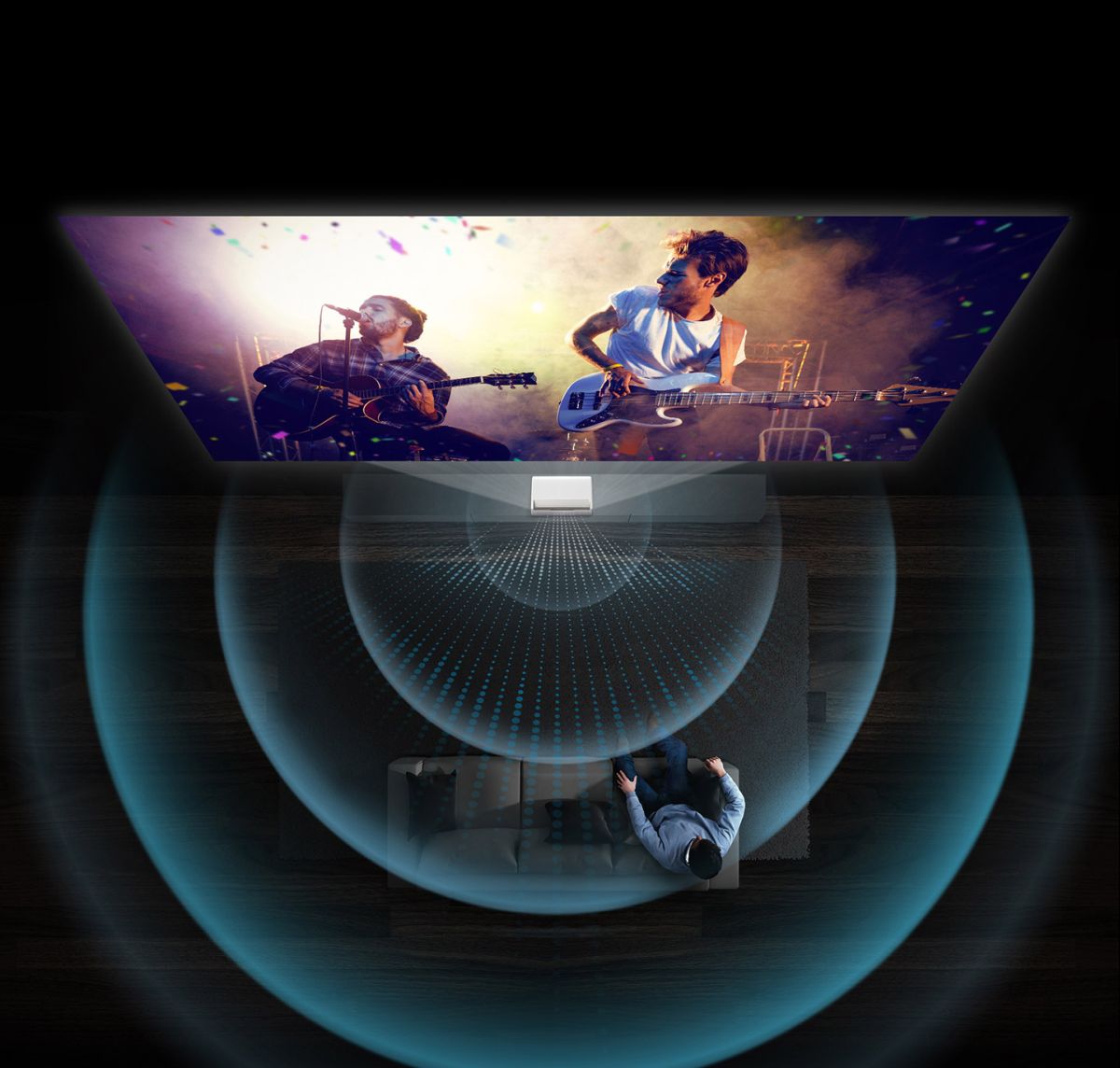 K dispozícii je aj pripojenie k mobilným zariadeniam pomocou technológie Tap View a mirroringu a televízne tunery. Reprodukciu zvuku zabezpečuje 44 otvorov na ľavej a pravej strane projektora, reproduktor je vybavený basovým wooferom a priestorovým zvukom Acoustic Beam.