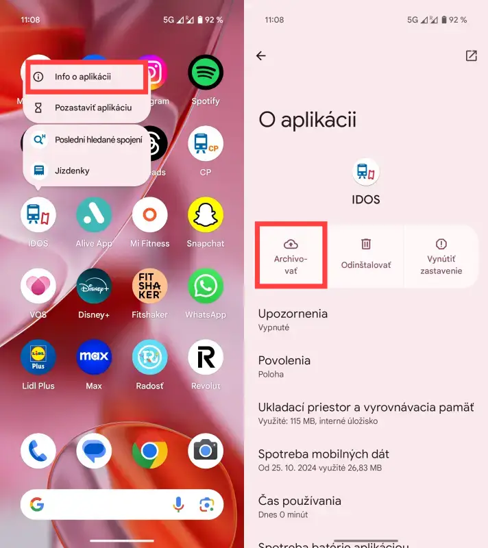 Pri archivácii sa totiž väčšina aplikácie odstráni zo smartfónu, časť z nej však na úložisku zostane. Uložia sa aj všetky dáta aplikácie, teda ak v nej máte nejaký používateľský účet či nastavenia, po obnovení aplikácie sa tieto údaje obnovia. K archivácii aplikácie sa dostanete nasledovne.