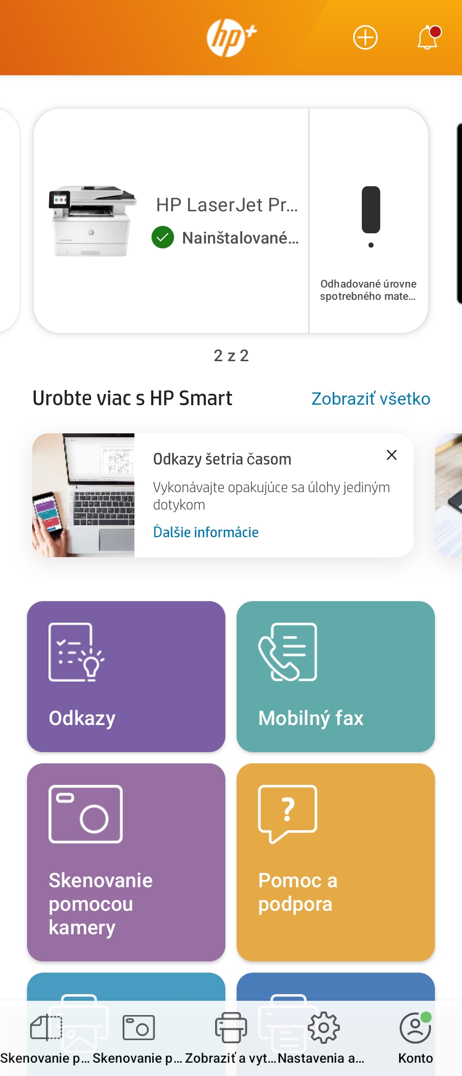 Pre HP zariadenia je pripravená mobilná aplikácia HP Smart. Pomocou nej tlačíte, kopírujete a skenujete z tohto mobilného zariadenia ako keby to bol počítač. Rovnako takto môžete použiť tablet. Dokonca tu existuje aj spôsob extrakcie naskenovaného textu do editovateľného textu s plnou podporou slovenčiny.