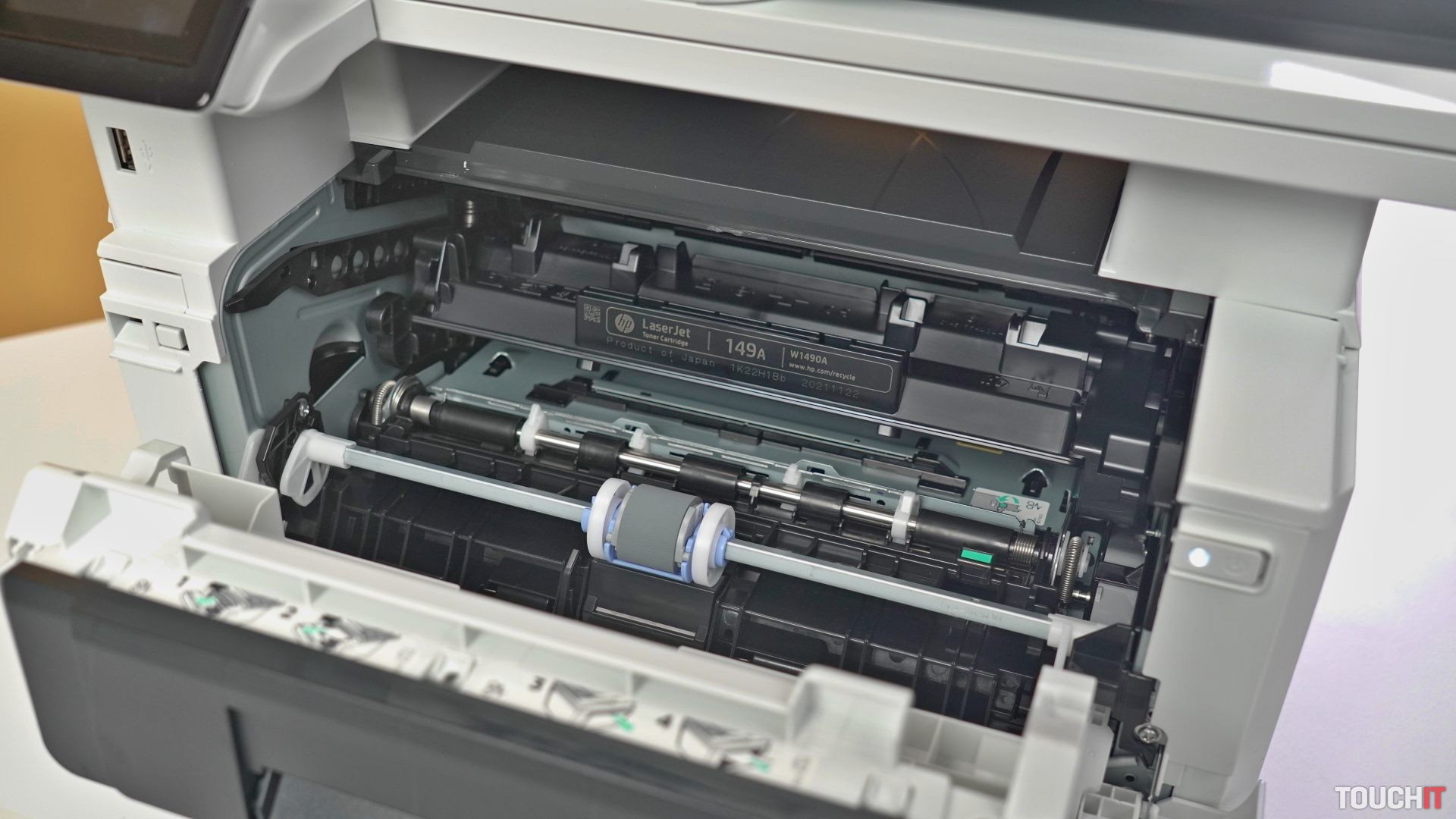 Tak poďme na to a vysvetlíme ako to celé funguje. LaserJet Pro MFP 4102dwe prichádza s tonerovou kazetou vo vnútri a použijete ju pri tom, keď zariadenie konfigurujete a s novou náplňou ešte kuriér k vám nedorazil. Tlačiť, skenovať a kopírovať teda môžete okamžite po vybalení tohto zariadenia. Len pripomeňme, že je to monochromatické zariadenie, tlačová kazeta je teda len jedna a to s čiernym tonerom.