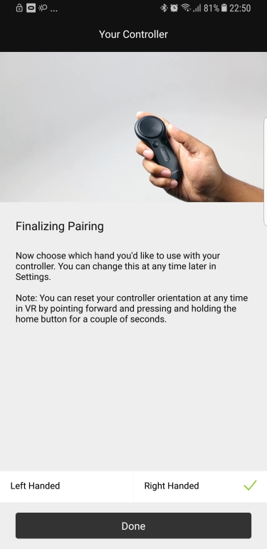 Ten využijete hlavne pri hrách. Sem-tam sa stalo, že ovládač stratil spojenie na okuliare, ale dalo sa to ľahko obnoviť. Aby ste ho nestratili pri akčnej hre, dá sa pripevniť k ruke. Hmotnosť ovládača je 64 gramov, obsahuje v sebe viacero snímačov polohy a zrýchlenia. Ovládač je poháňaný dvoma AA batériami s výdržou na 40 dní prevádzky (2 hodiny použitia denne).