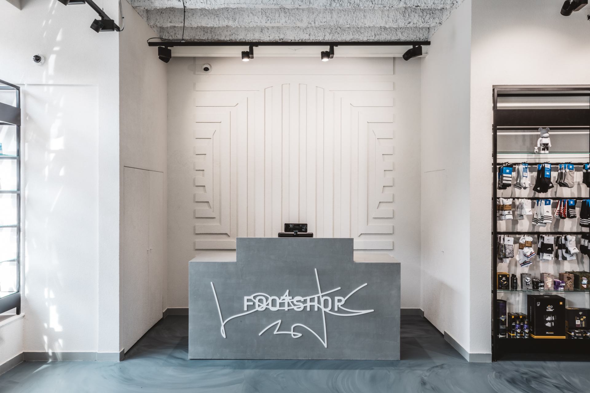 Pri navrhovaní interiéru novej predajne bol inšpiráciou interiér hotela Kyjev. Významným prvkom je kruh, ktorý zohráva vlastnú úlohu vo viacerých detailoch predajne. Za predajným pultom sa nachádza výrazná inštalácia pripomínajúca fasádu hotela Kyjev, dominantný výrez v stene v strede predajne má rovnaký kruhový tvar ako hlavné zrkadlo pri skúšobných kabínkach a kruh bude hrať hlavnú úlohu aj vo vyhradenom priestore pre umenie v zadnej časti predajne. Footshop totiž myslí na umenie a podporuje lokálnych tvorcov v Bratislave. V Art Space bratislavskej predajne sa ako prvý predstaví umelec Ašot Haas.
