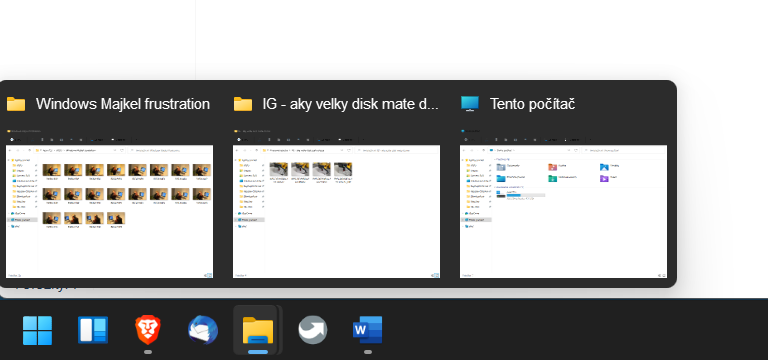 Tiež existuje možnosť prepínať okná cez Alt + Tab. Jasné, že je to o zvyku, ale ani vo Windows 10 som nemal aplikácie a otvorené okná bez popisov a zgrupované. Teraz už nemám na výber. Prečo túto funkciu vypustili? Asi aby vyzeral panel krajšie a upratanejšie. Takto sa dnes robia veci, hlavne aby pekne vyzerali.