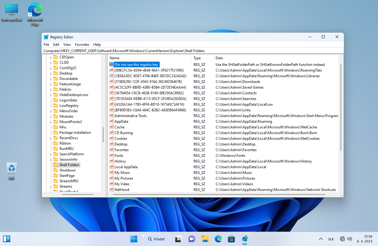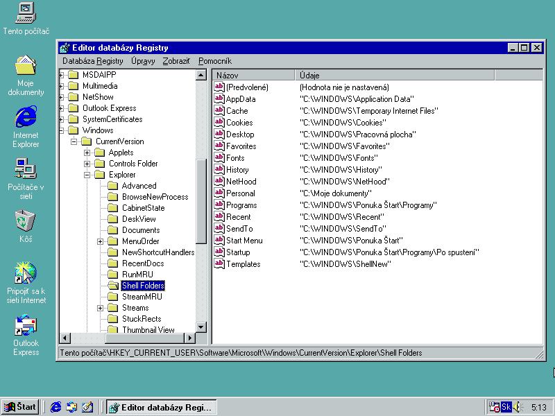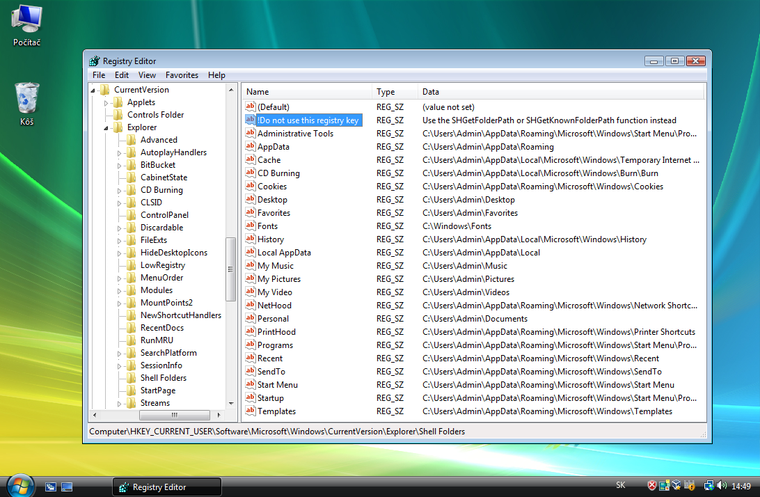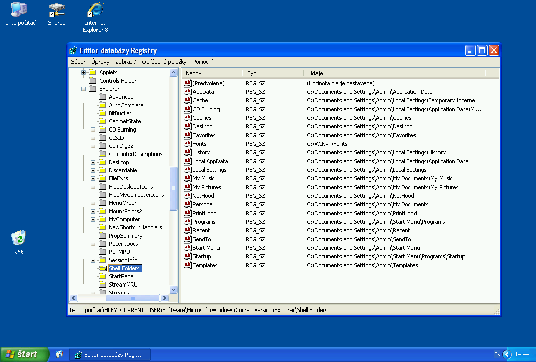 Presne takto sa volá úplne prvá položka vetvy Shell Folders, ktorá obsahuje niekoľko desiatok položiek s cestami, ktoré akoby vyzývali k ľahkému strojovému čítaniu, alebo k pridaniu tej vlastnej, vždy keď to potrebujete.