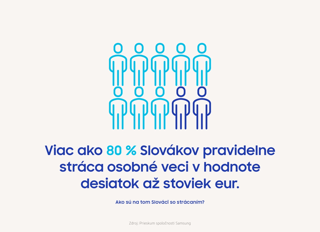 Každá strata je nepríjemná a navyše môže vyjsť aj poriadne draho. Počas roka stratí viac ako polovica Slovákov v priemere do dvoch vecí, ďalších 22 % stratí každoročne až do 10 predmetov. Až 57 % stratených vecí sa pohybuje rádovo v desiatkach až stovkách eur. Vyplýva to z prieskumu spoločnosti Samsung na vzorke 1095 ľudí starších ako 18 rokov, ktorá nedávno predstavila jednoduché riešenie v podobe unikátneho lokalizačného prívesku Galaxy SmartTag, ktorý umožňuje svoje veci opäť nájsť, aj keď sa nachádzajú kdekoľvek.