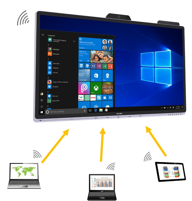 Interaktívny displej obsahuje niekoľko predinštalovaných aplikácií, jeho koncept je však založený na tom, že k nemu pripojíte iné zariadenia – či už pomocou HDMI portu, cez USB-C alebo bezdrôtovo. Obrazovka v sebe obsahuje Miracast na rýchle a jednoduché bezdrôtové pripojenie Windows alebo Android zariadení. Súčasťou balenia je 8-metrový aktívny USB-C kábel, ktorý zabezpečuje stabilné pripojenie aj na väčšiu vzdialenosť a okrem prenosu zabezpečuje dotykovú funkcionalitu, využívanie 4K kamery, zabudovaných mikrofónov a napájanie. V prípade pripojenia cez HDMI je potrebné použiť druhý USB kábel na zabezpečenie interaktivity.