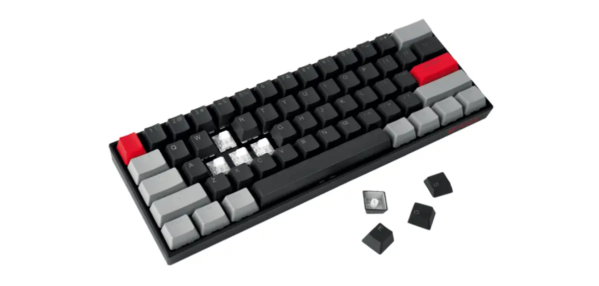 Herná klávesnica je vybavená prémiovými mechanickými spínačmi Kailh Box White, ktoré poskytujú jemný stisk s citeľným clicky tactile bumpom. Táto klávesnica zaručuje perfektnú ovládateľnosť a citlivosť v akejkoľvek situácii. Vyniká vysokou odolnosťou vďaka Double-Shot PBT tlačidlám, ktoré vydržia stovky hodín hrania. Kompaktné telo tvorí 61 % veľkosti štandardnej klávesnice. Plne nastaviteľné RGB podsvietenie a N-Key rollover zabezpečujú stopercentný záznam stlačení.