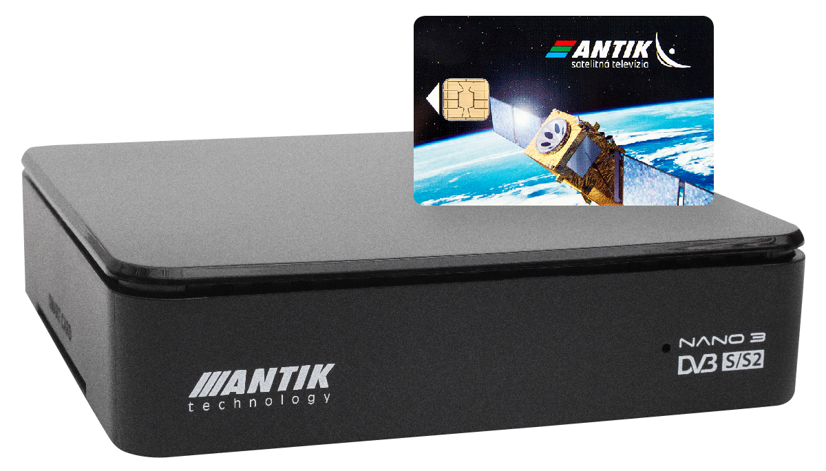 Pokiaľ preferujete sledovanie televízie cez satelit, do pozornosti dávame unikátny hybridný satelitný set-top box Antik NANO 3S s televíznym archívom. Ten je určený predovšetkým pre satelitnú televíziu AntikSAT s takmer 200 kanálmi, niektorými v HD kvalite. Jeho súčasťou je tiež Antik dekódovacia karta za zvýhodnenú cenu.