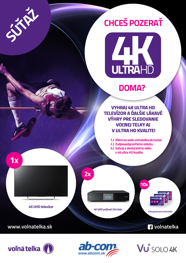 „Pre divákov sme pripravili v spolupráci so spoločnosťami Euronics TPD a AB-COM prezentáciu UHD 4K vysielania priamo v elektro predajni TPD na Farského ul. v Bratislave – Petržalke. Okrem diváckeho zážitku si návštevníci môžu odniesť aj šancu vyhrať UHD 4K televízor alebo špičkový externý prijímač VU+ Solo 4K s DVB-T2 tunerom“ povedal Michal Šuran, marketingový manažér Towercomu. Viac informácii o súťaži na www.volnatelka.sk/sutaz.