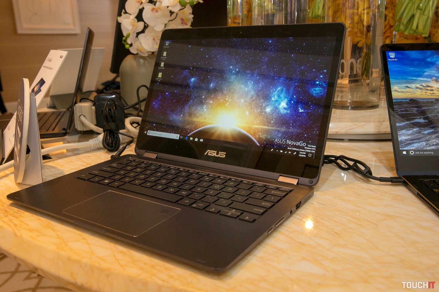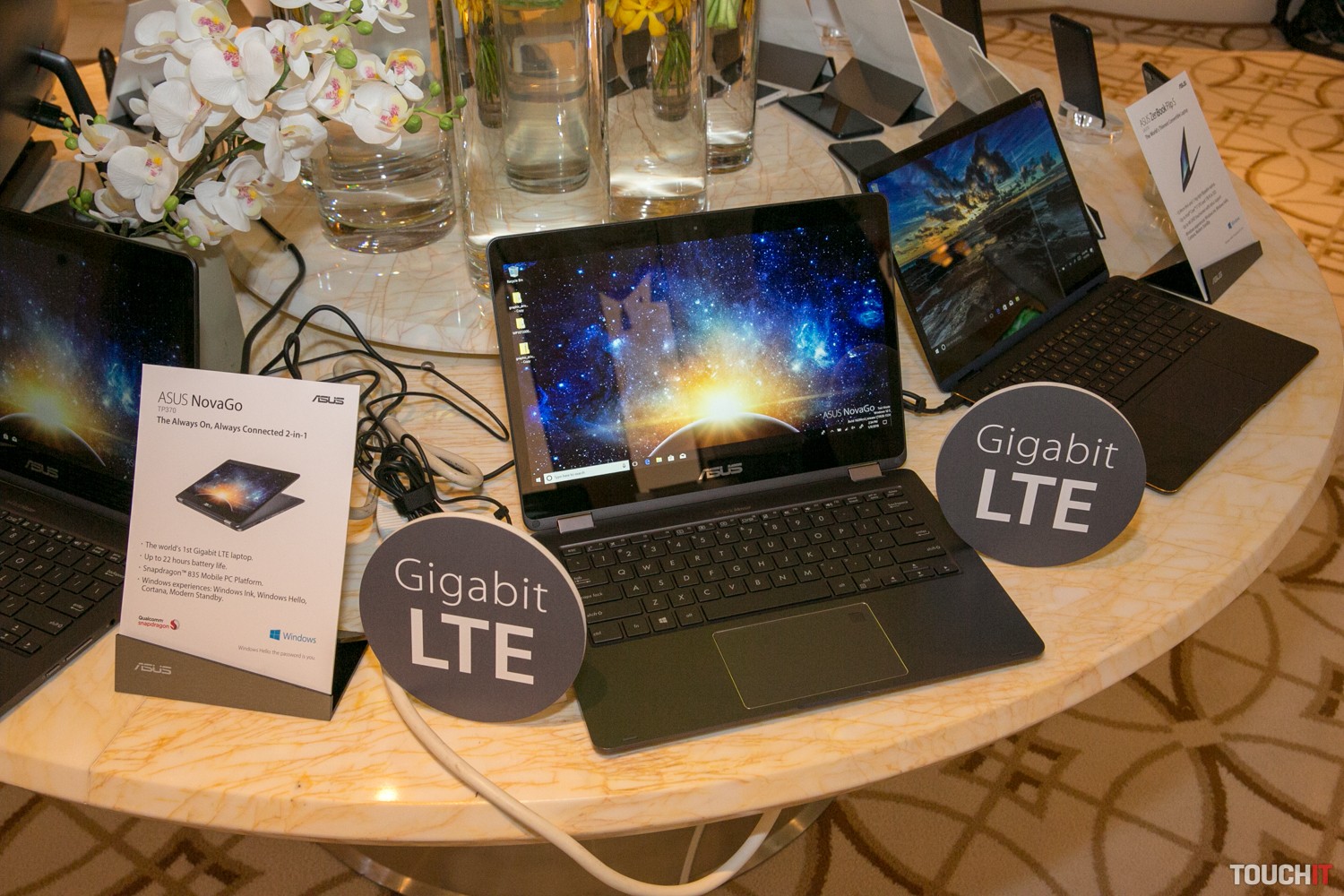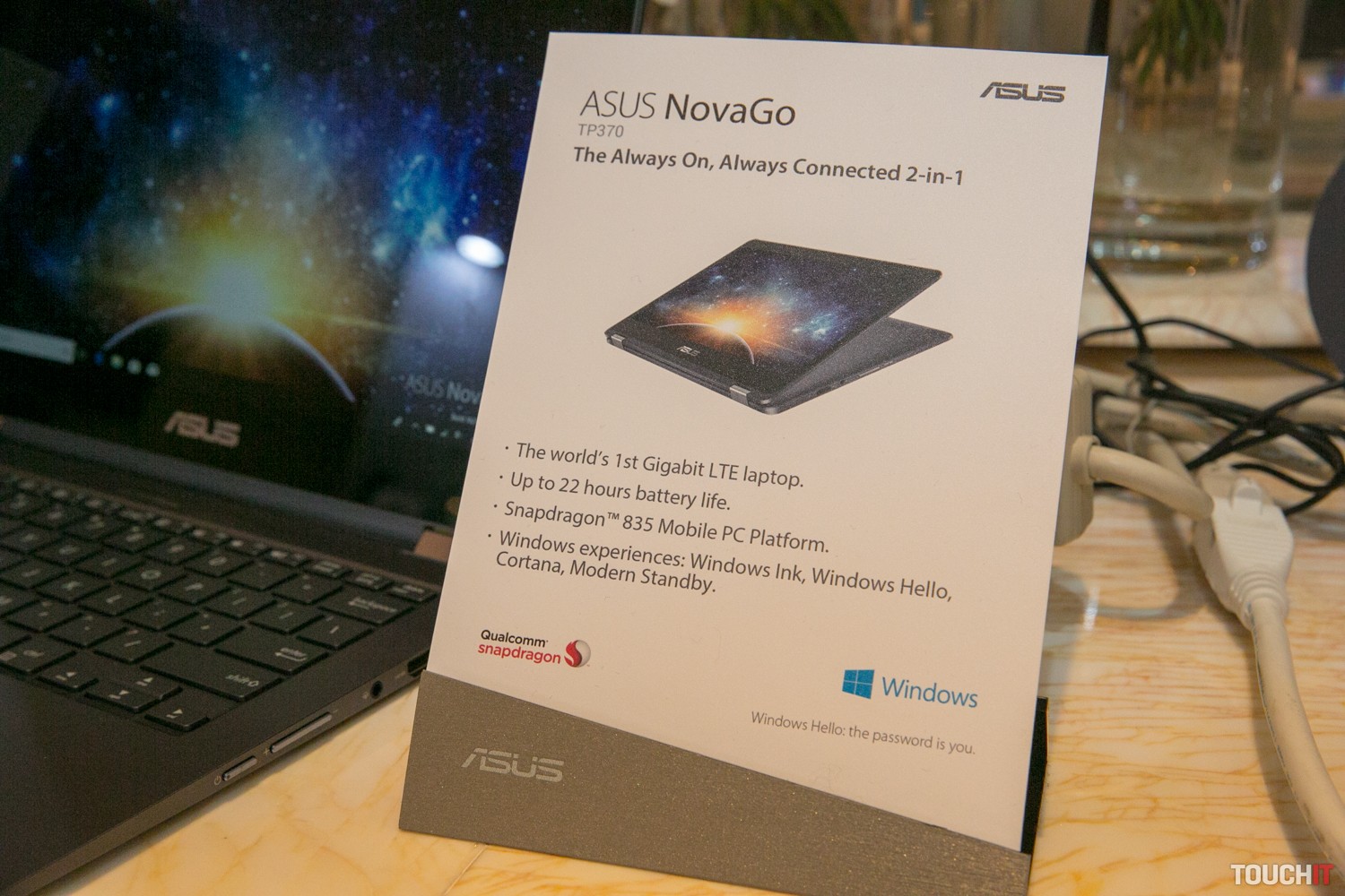 ASUS NovaGo predstavuje novú generáciu mobilných počítačov, ktoré poháňa procesor Snapdragon 835. Jeho hlavnou výhodou je nízka spotreba energie, vďaka čomu NovaGo sľubuje výdrž až 22 hodín na jedno nabitie. Procesor tiež nie je potrebné chladiť pomocou ventilátora. Otázkou ostáva jeho výkon – notebook reagoval počas nášho niekoľkominútového skúšania svižne, avšak na podrobné zhodnotenie výkonu treba počkať až na recenziu. Výhodou je aj zabudovaný 4G modem s rýchlosťou prenosu dát až 1 Gbps. NovaGo je konvertibilný notebook, ktorý umožňuje otočiť 13,3-palcový Full HD displej až o 360°. Zariadenie bude dostupné v konfiguráciách so 4 až 8 GB RAM a so 64 GB až 256 GB UFS 2.0 úložiskom. Základom je operačný systém Windows 10 S s možnosťou prechodu na Windows 10 Pro. Notebook váži 1,39 kg, hrúbku má 14,9 mm. Cenu a dostupnosť pre náš trh zatiaľ nepoznáme.ASUS NovaGo