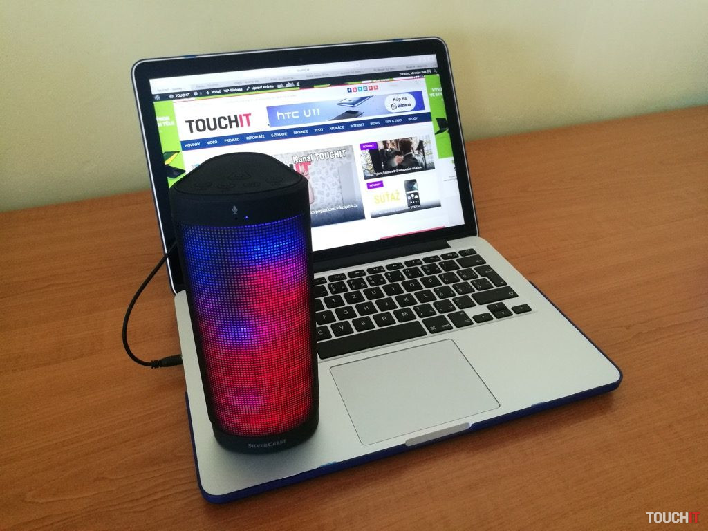 Integrovaná batéria má kapacitu 2000 mAh, čo postačuje na 5 hodín bezdrôtového prehrávania hudby, ale iba v režime bez svetelných efektov. Ak máte efekty zapnuté, výdrž batérie sa zníži na približne 3 až 4 hodiny. Nabíjanie zariadenia je cez microUSB konektor a príslušný kábel nájdete aj v balení. Dĺžka nabíjania pomocou klasickej nabíjačky (pre smartfón) je približne 1,5 hodiny. Ak nabíjate cez notebook alebo počítač, tento čas sa môže zdvojnásobiť. My sme nabíjali reproduktor aj výkonnou powerbankou a dĺžka nabíjania je obdobná ako pri klasickej sieťovej nabíjačke.