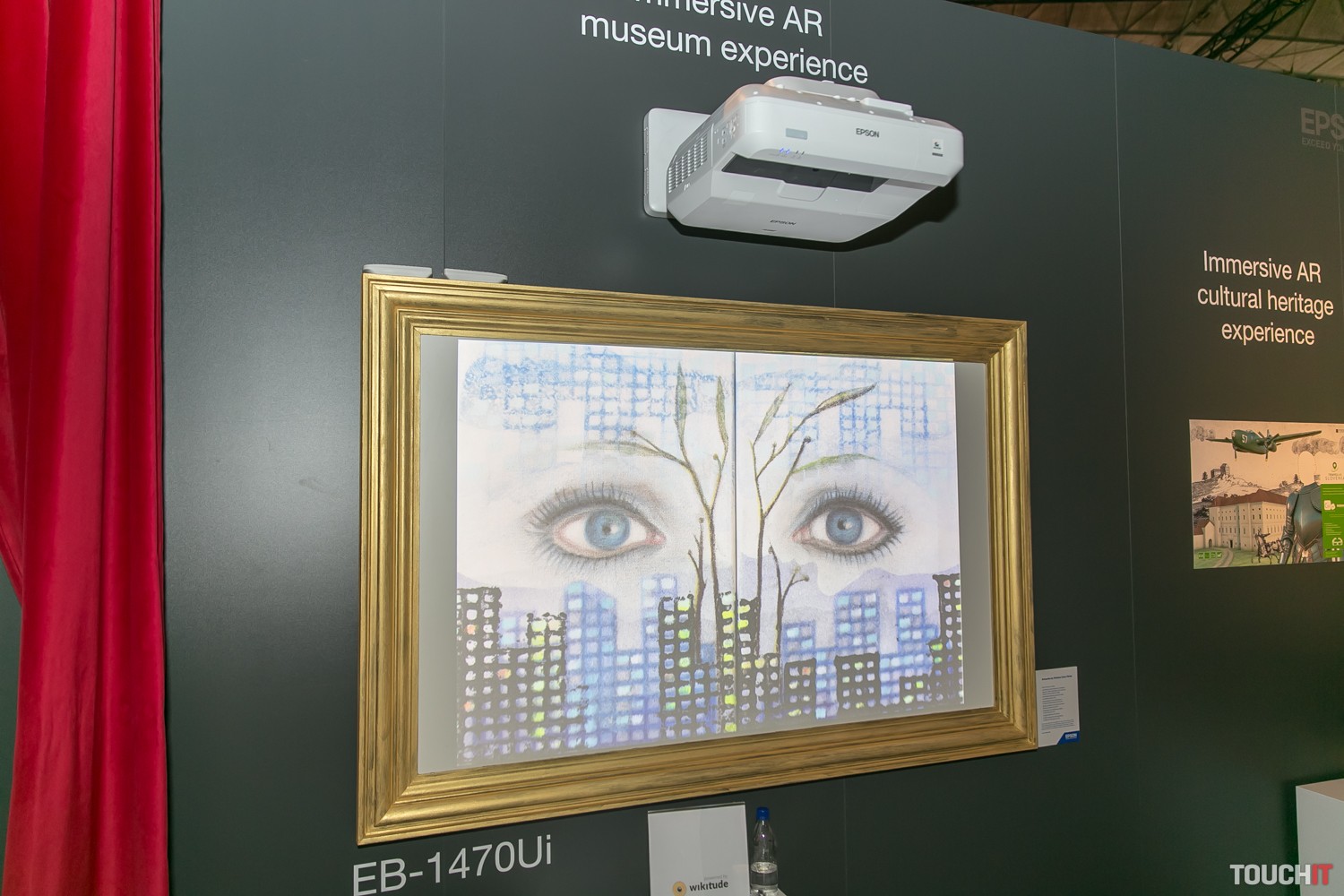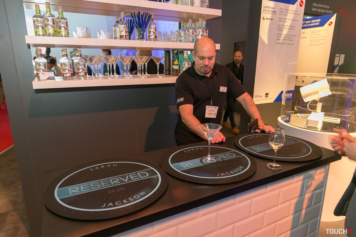 Hlavnú prezentáciu vo vnútri stánku mal však laserový projektor s označením EV-100. Takto môžete ľahko nájsť svoje rezervované miesto v bare, prečítať si ponukový lístok a do budúcna aj interaktívne vybrať z ponuky. Výhodou laserového projektora je to, že dokáže vytvoriť absolútnu čiernu a životnosť zdroja svetla je až na 20 000 hodín.