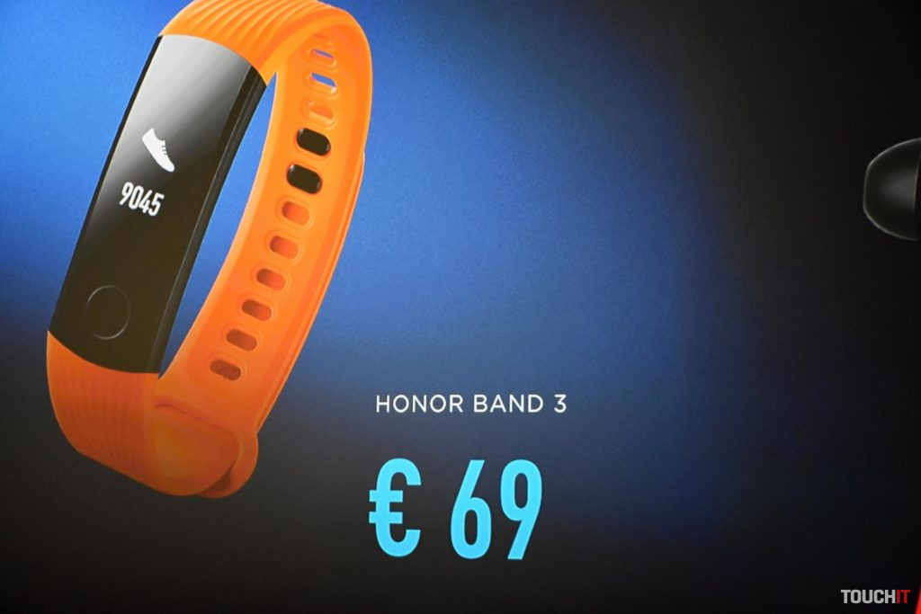 Na predstavení sme videli aj novinku v podobe fitness náramku Honor Band 3. Je vodeodolný až do hĺbky 50 metrov, batéria v ňom vydrží 30 dní a má vlastný displej. Cena je 69 EUR.