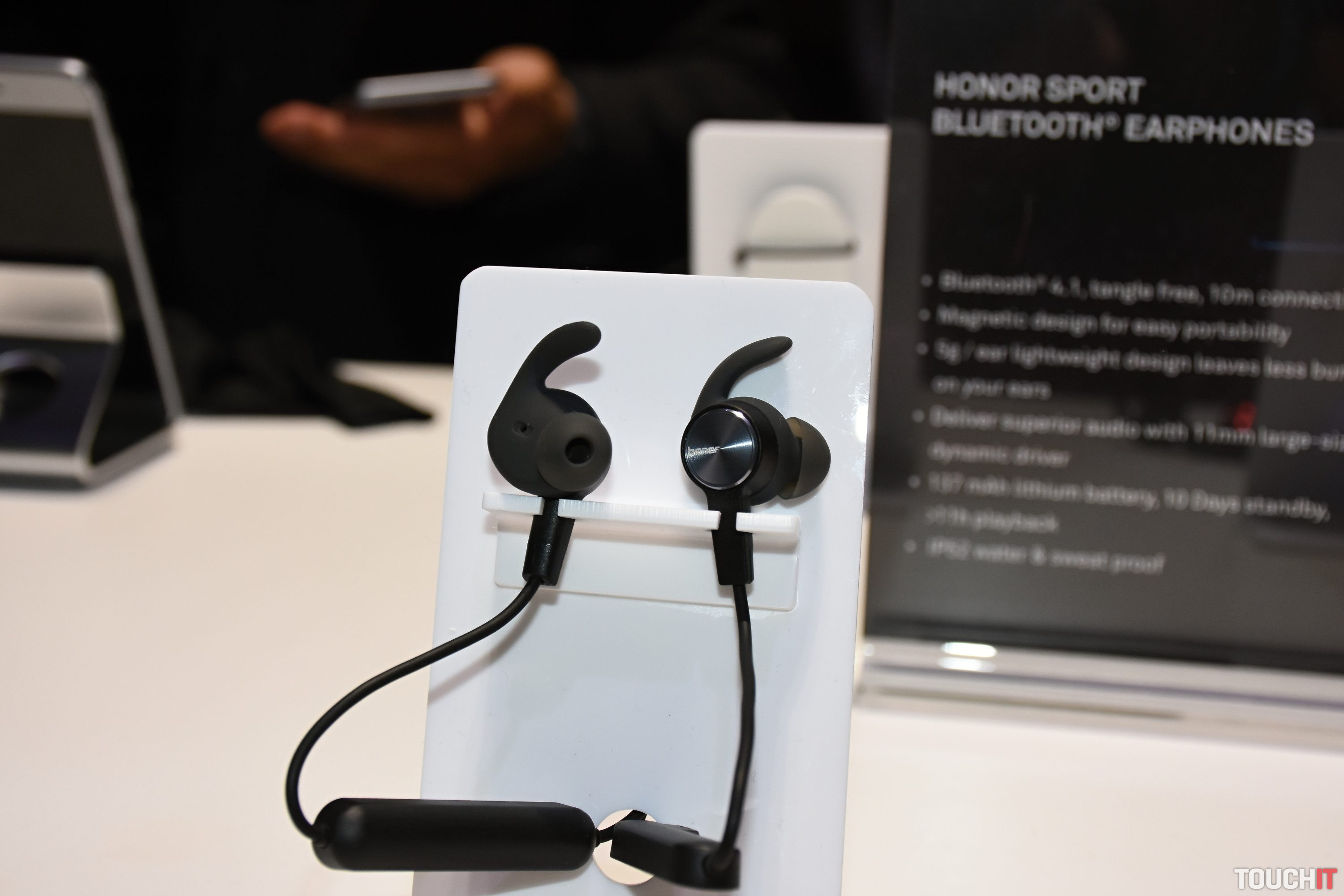 Na predstavení nechýbali ani Bluetooth slúchadlá Honor Sport Bluetooth určené na športovanie. Vďaka špeciálnym aretačným náušníkom nevypadnú z ucha, odolajú aj  dažďu a potu. Hudbu vydržia prehrávať 11 hodín a 10 dní v pohotovostnom režime. Funkcia magnetického pripojenia mušlí o seba ich udrží spolu keď ich nepoužívate a prenášate v batožine.