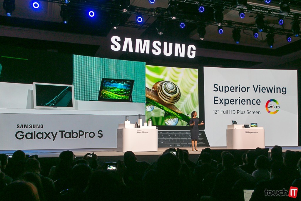 Už teraz sa tešíme na ich recenziu, podľa toho, čo sme videli na stánku firmy Samsung na CESe ide o skutočnú revolúciu v podaní obrazu. Model HW-K950 je pritom vybavený zvukom s certifikáciou Dolby Atmos a rozšírením HDR pri videu. Nakoniec tu máme aj nový tablet s odnímateľnou klávesnicou Samsung Galaxy TabPro S. Tento používa operačný systém Microsoft Windows, má 12 palcový Super AMOLED displej s rozlíšením Full HD Plus (2160 × 1440) a výdrž batérie (5200 mAh) má presahovať jeden pracovný deň (10,5 hodiny). Na nabitie batérie postačí 2,5 hodiny nabíjania.