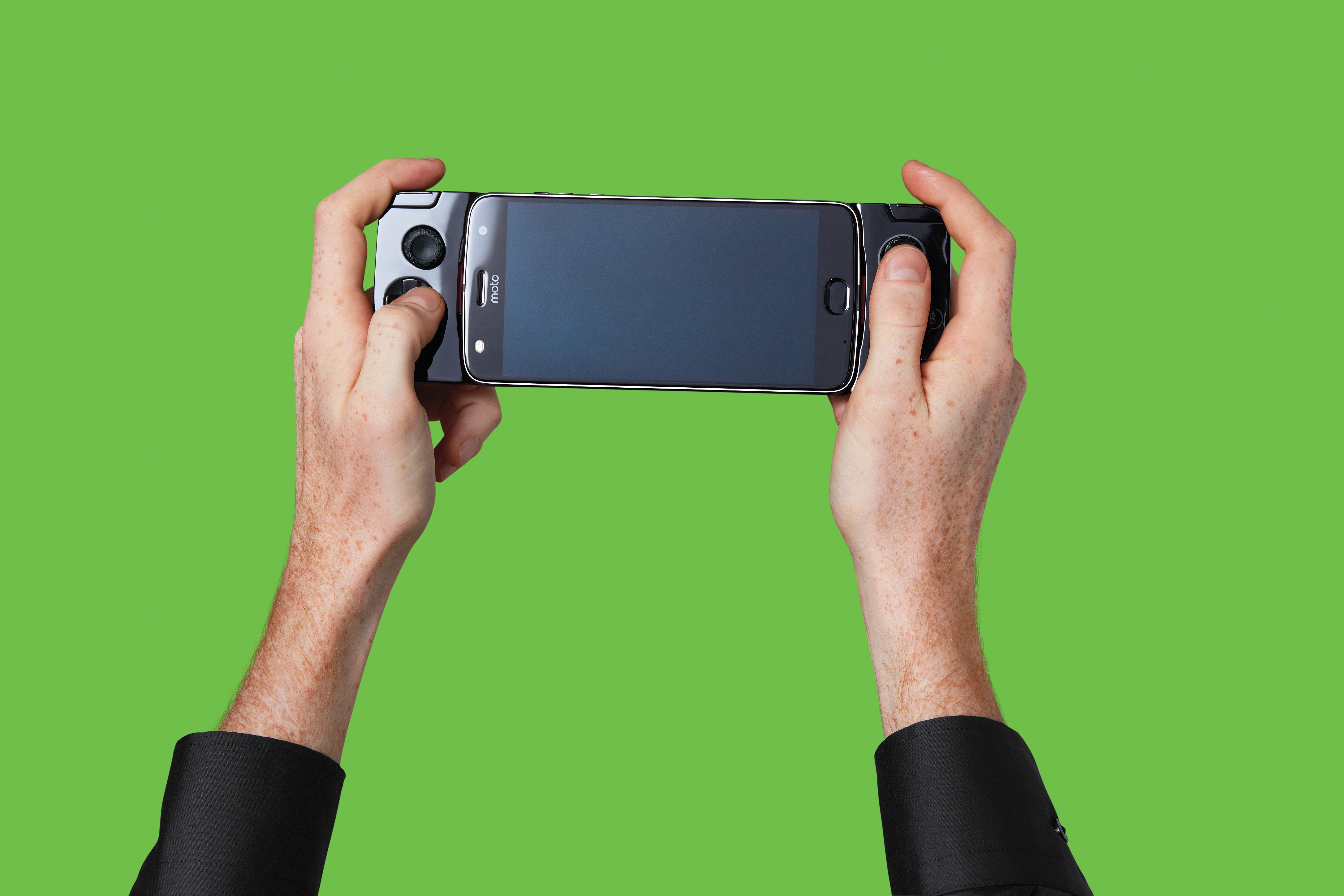 je určený pre hráčov. Po zapojení Gamepadu už asi nebudete chcieť hrať svoje obľúbené hry na dotykovej obrazovke telefónu. Modul stačí magneticky pripojiť k moto z a môžete rovno hrať.