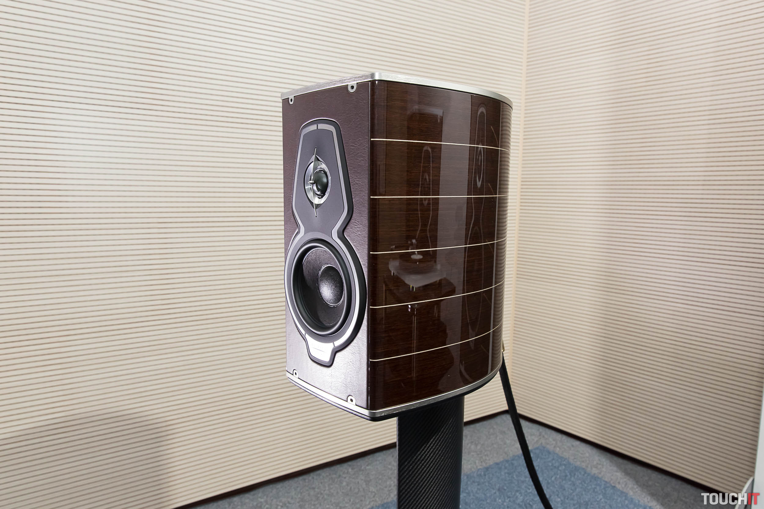 Ako sme sa dozvedeli, Sonis faber kladie dôraz na tradície, dizajn reproduktorov je odvodený od hudobných nástrojov, ale aj overenej klasiky v podobe člna a filmov 60-tych rokov. V rámci posluchovej miestnosti sme si vyskúšali Guarneri tradition, čo sú reproduktory z novej trojice v rodine Homege Tradition.