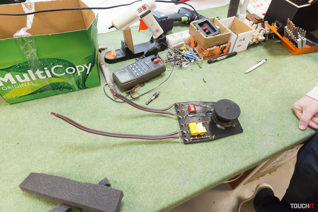 Samozrejme sme si pozreli aj elektronickú výbavu, Acoustique Quality si potrpí na kvalitné spoje k frekvenčným výhybkám. Každý reproduktor prechádza testovaním a pokračuje ďalej do predaja.