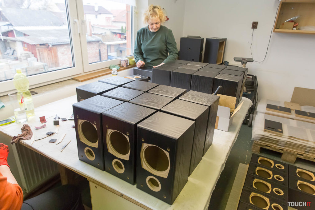 Na to majú v Acoustique Quality špičkové stroje a hlavne partu povedzme stolárov, ktorí dobre vedia, čo majú robiť. To by však na predaj reproduktorov nestačilo, tieto produkty musia aj dobre vyzerať.