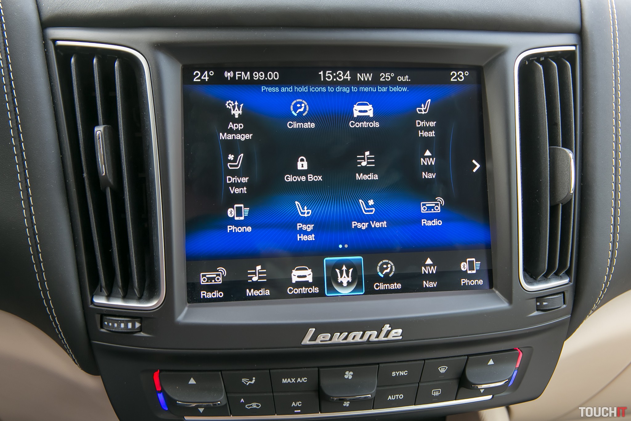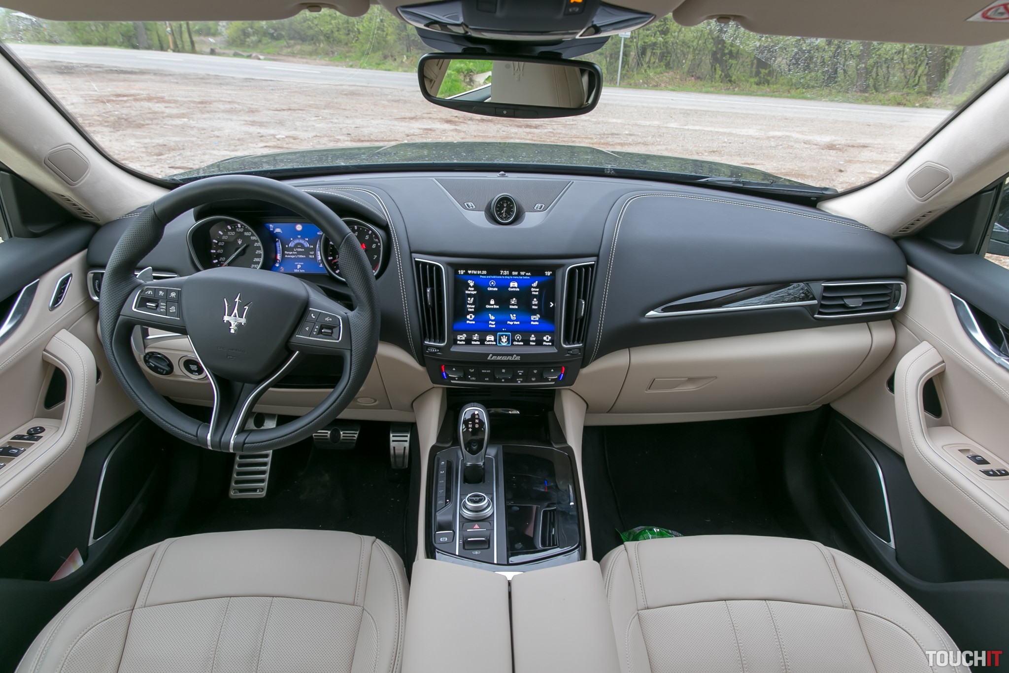 Dotykový displej na palubnej doske je farebný a výborným kontrastom. Dá sa prispôsobiť v tom smere, že si dôležité ikony presuniete do spodného riadku. Žiaľ, nedajú sa meniť pozície ikon na samotnom displeji. Ale na dotyk reaguje pružne a na ihneď. Samozrejme máte aj 360° pohľad okolo auta a parkovacie senzory. Škrabance pi cúvaní by tak nemali nastať, ale je pravda, že parkovať s Maserati Levante S v podzemnej bratislavskej garáži si vyžaduje celkom zručnosť.