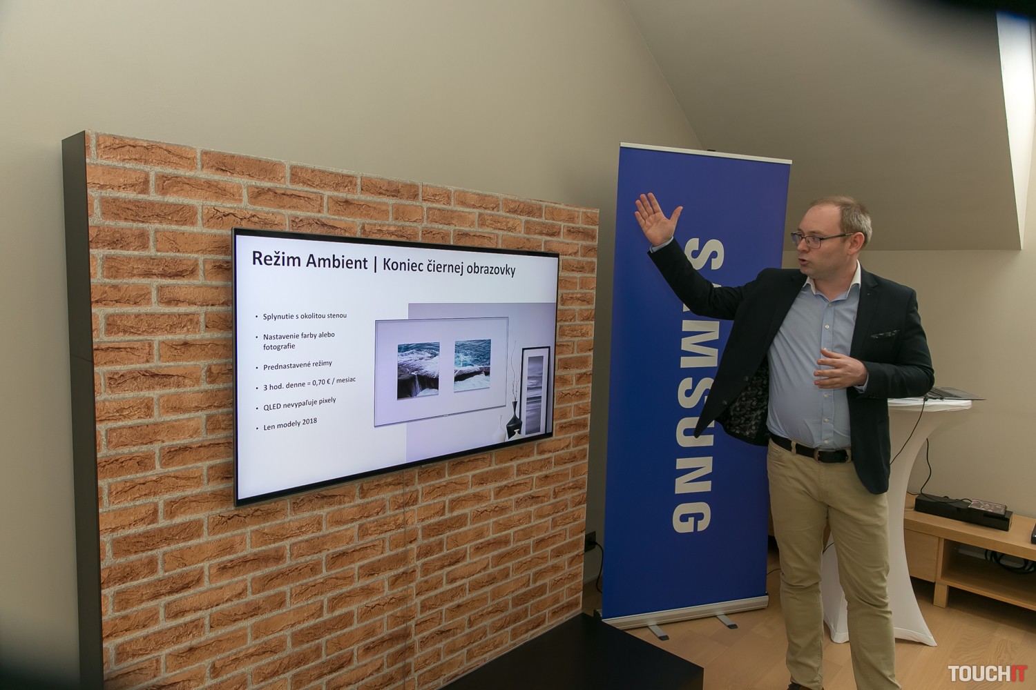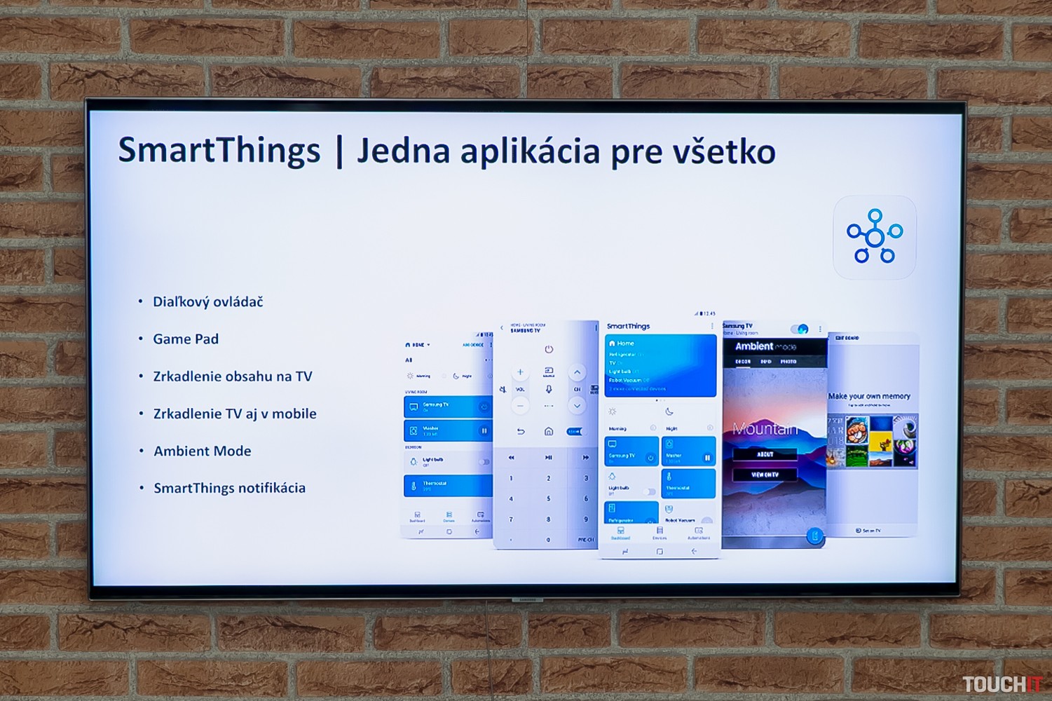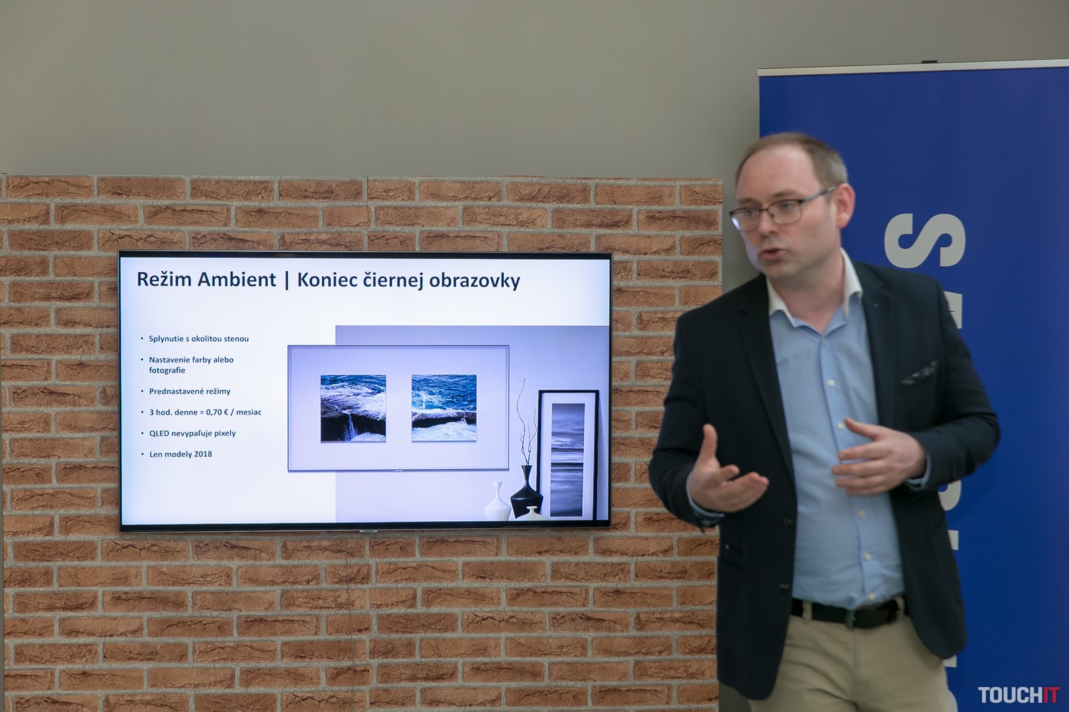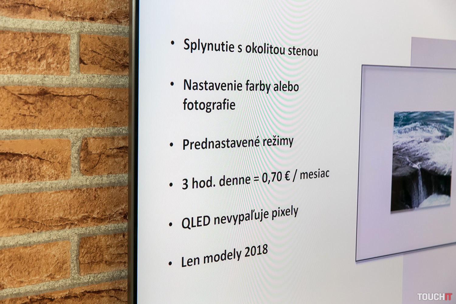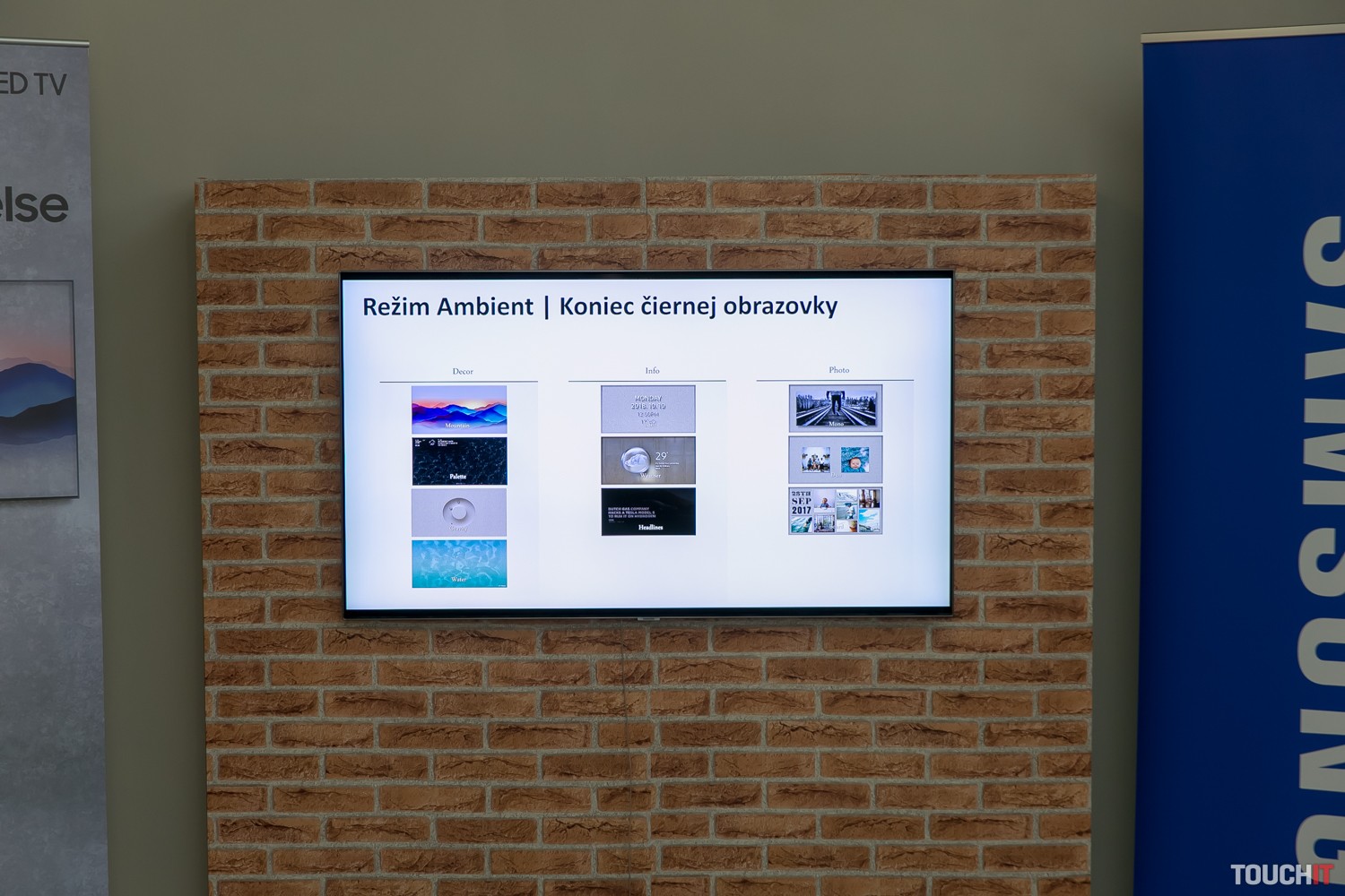 Na nastavenie Ambient režimu sa využíva vynovená mobilná aplikácia. Pomocou nej si môžete rozpoznať napr. štruktúru stena za vami a nastaviť pozadie na televízore tak, aby televízor so stenou naozaj splynul. Režim Ambient tak cez mobilnú aplikáciu rozpozná farbu a vzor steny, na ktorej je televízor nainštalovaný a dokáže obrazovku prispôsobiť dizajnu vášho interiéru. Vo výsledku tak máte zdanlivo priehľadnú obrazovku, nie veľkú čiernu plochu. Je to naozaj veľmi pôsobivé.