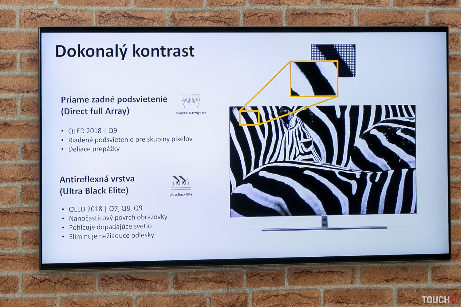 Na stretnutí s novinármi Samsung ukázal aj nový typ QLED televízora, ktorý má tzv priame zadné podsvietenie. Teda obsahuje zobrazovacie body, ktoré môžu byť buď rozsvietené alebo zhasnuté a takto dosahuje kvalitu zobrazenia ako je to v prípade OLED televízorov. Táto technológia je však dostupná len v prípade najvyššieho modelu Q9. Potvrdzujeme, že v prípade tohto modelu je čierna naozaj čierna, bez kompromisov.