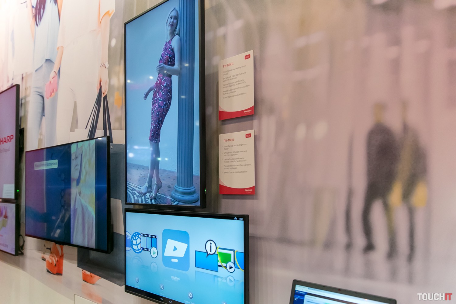 Hlavnú časť expozície však tvorili interaktívne displeje s uhlopriečkami 60, 70 a 80 palcov, ktoré firma ponúka ako efektívnejšou náhradu projektorov napr. pre firmy do zasadačiek. Tieto zariadenia umožňujú lepšie využiť pracovný čas, dá sa pri nich lepšie diskutovať a prinášať nové nápady. Pritom sa predávajú za veľmi zaujímavé ceny.