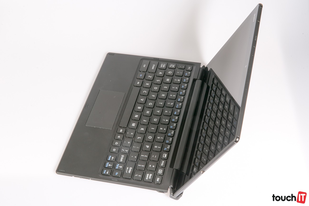 Klávesnica v zatvorenom stave funguje ako kryt displeja, v otvorenom stave je to podložka na zaistenie polohy tabletu vhodnej na písanie. Z hľadiska rozloženia znakov je k dispozícii aj podpora pre slovenskú klávesnicu. Okrem toho sú tu aj funkčné klávesy napr. na nastavenie jasu, hlasitosti alebo nastavenia OS.