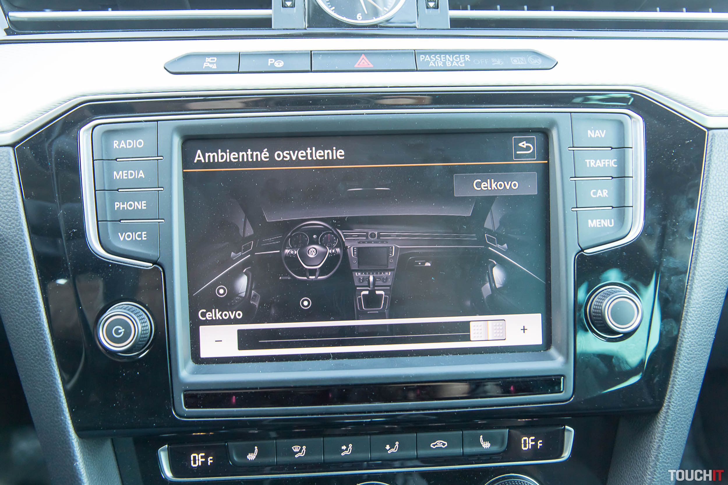 Ďalej si všimnete denné LED svietenie v tvare písmena C, ktoré je pri modeli Passat GTE integrované do nárazníkov s výraznými priečnymi lištami. Nápis GTE s modrým podkladom na bokoch vozidla podčiarkuje ekologické zameranie tohto vozidla. Aj podsvietenie kabíny v noci je realizované v modrej farbe.