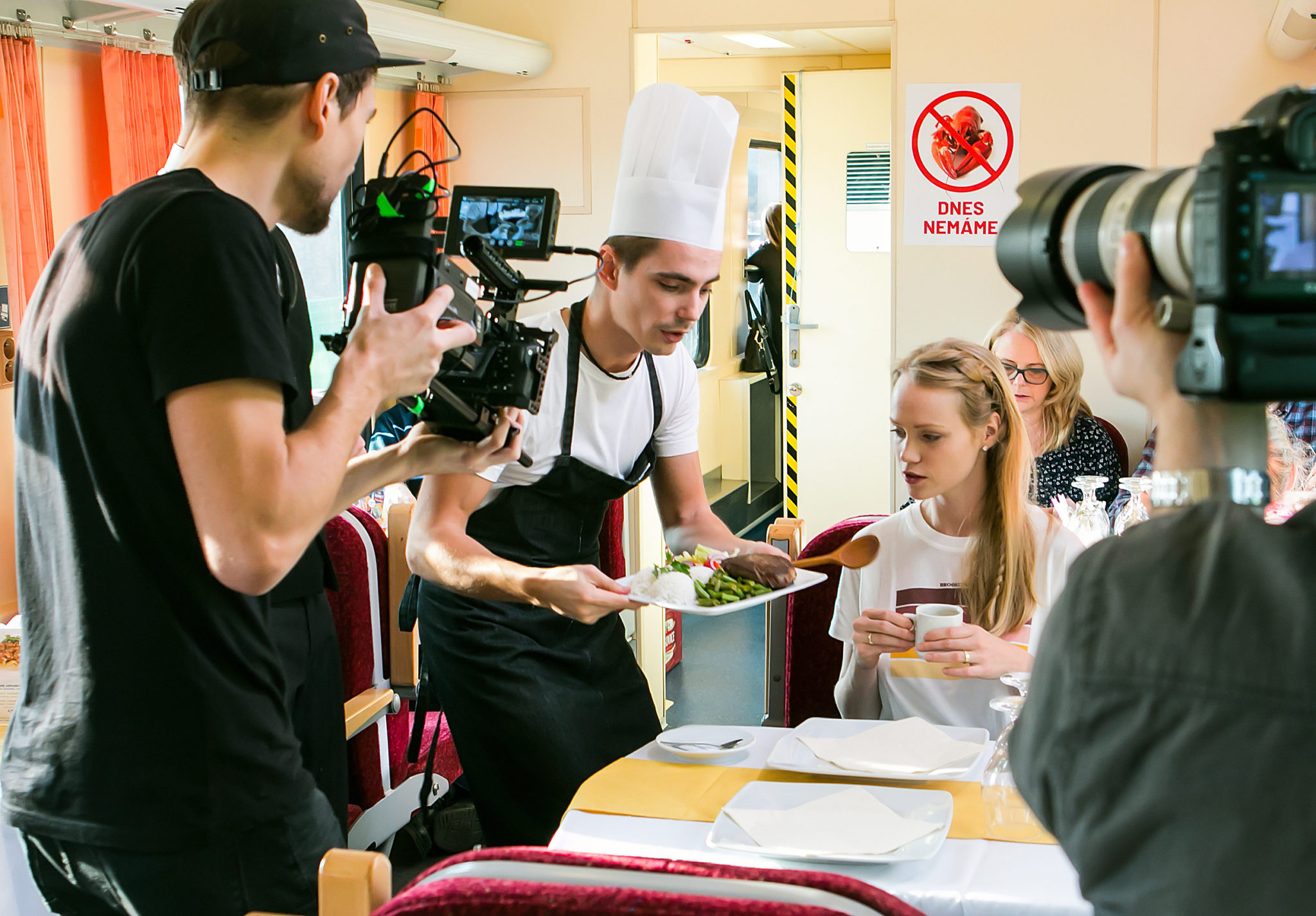 stovkou zamestnancov ZSSK. To, čo sa začína ako obyčajná cesta, sa cez výpočet všetkých výhod, ktoré so sebou cestovanie vlakom prináša, postupne mení až na spontánnu párty v spoločenskom