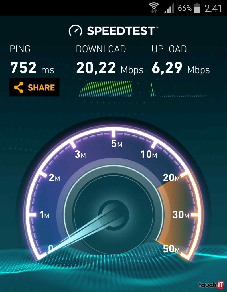 Tooway je mobilný – môžete si so zriadiť takmer kdekoľvek, a pri napr. sťahovaní si ho zoberiete bez problémov zo sebou a opäť ho nainštalujete na novom mieste. Bez obťažujúceho nahlasovania poskytovateľovi, vybavovania papierov na premiestnenie a pod. Vysoká rýchlosť – udávané poskytovateľom až 22/6 Mbps a spoľahlivosť 99,5 %. Počas nášho testovania sa merania rýchlosti k týmto číslam naozaj približovali a pripojenie bolo veľmi stabilné bez akéhokoľvek výpadku. Merania si možete pozrieť a porovnať na obrázkoch nižšie: