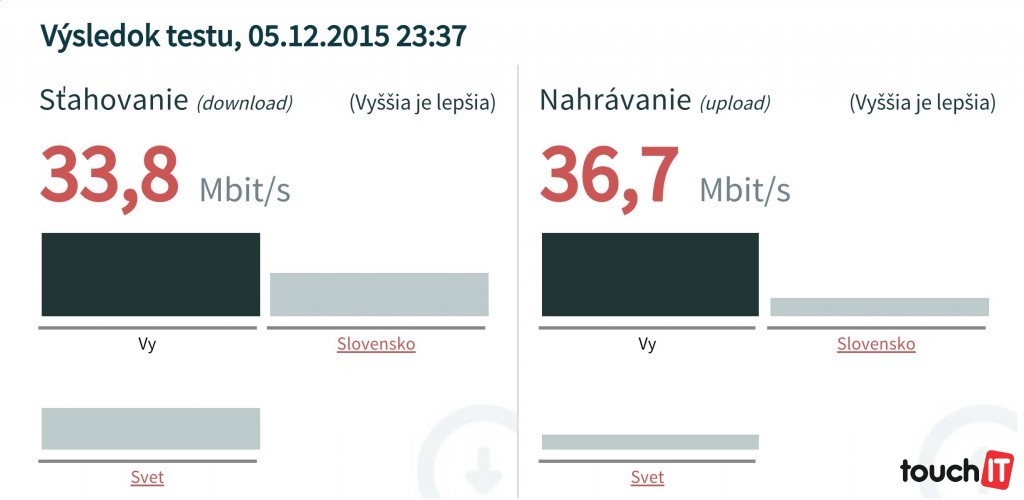 • UPLOAD priemer meraní cca – 5,5 Mbps