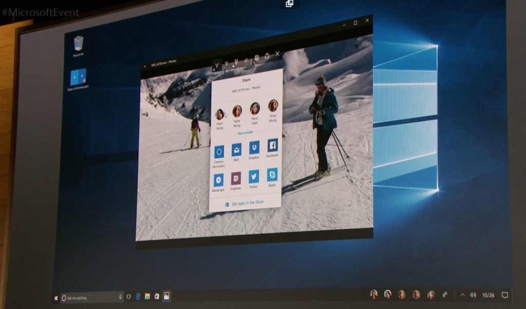 Novou súčasťou systému Windows 10 bude aj interaktívny prvok so zoznamom obľúbených kontaktov, ktorý je umiestnený priamo na spodnú lištu a takisto je integrovaný do funkcie zdieľania.