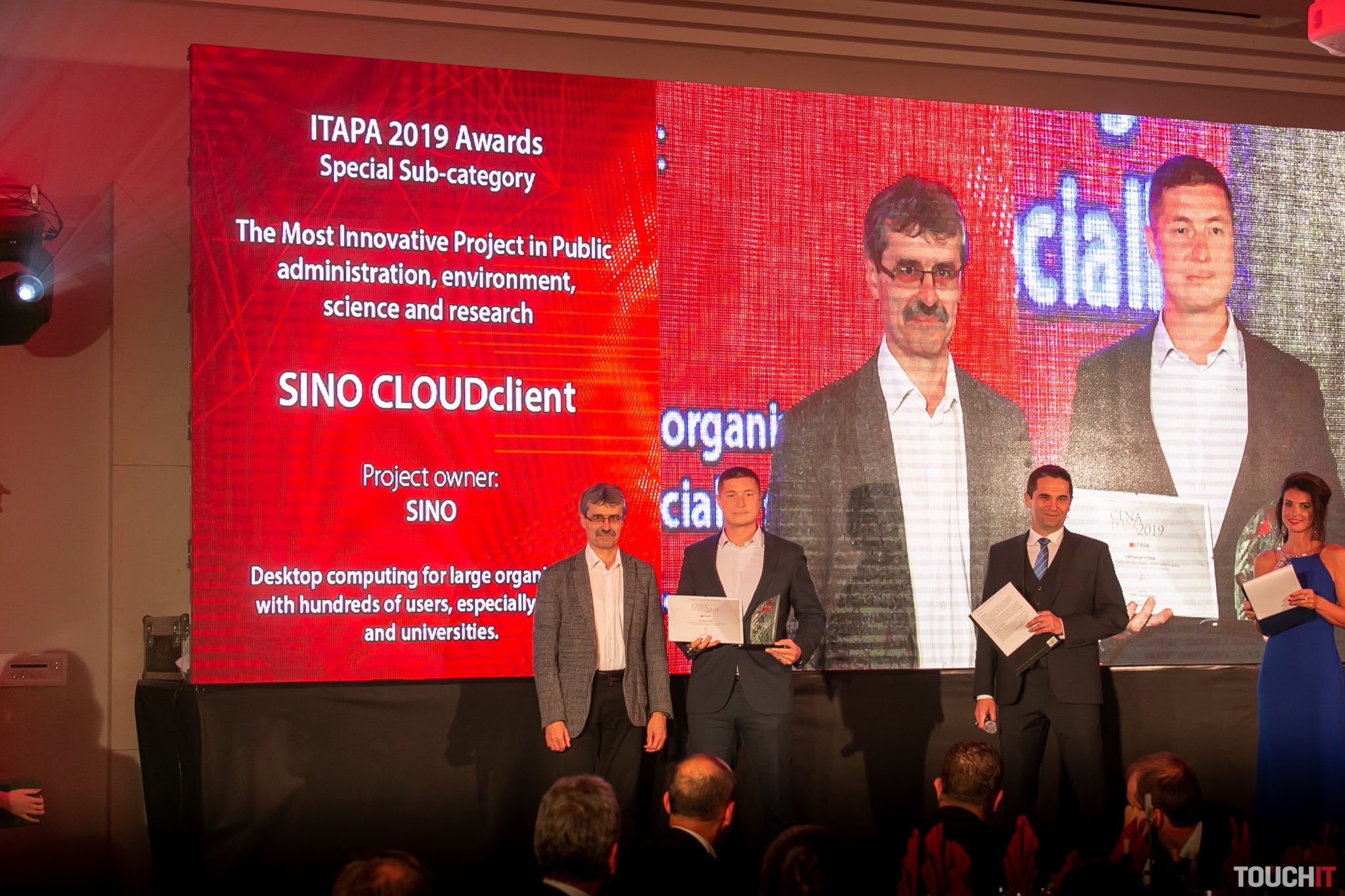 - Najinovatívnejší projekt v oblasti verejnej správy, životného prostredia alebo vedy a výskumu – SINO CLOUDclient od spoločnosti SINO je víťazom v kategórii projektov, ktoré využívajú najnovšie IT technológie na zefektívnenie fungovania verejnej správy. Cieľom bolo vyvinúť počítačové vybavenie pre zložité 2D a 3D projekty, ako aj zvýšiť výkon a znížiť náklady počítačov na školách, univerzitách a v organizáciách. Dôležitým prvkom projektu je aj výnimočná kybernetická bezpečnosť takýchto zariadení.