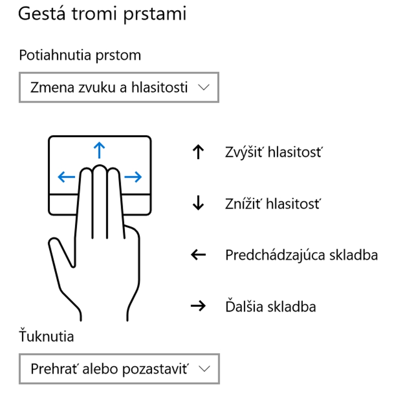Touchpad bude reagovať na dotyk ako aj na potiahnutie prstami nahor a nadol. V prípade, že chcete zabrániť náhodným dotykom alebo dané funkcie nepotrebujete, dá sa reakcia na prsty v tomto počte vypnúť. Je tu na výber medzi potiahnutím a pohybom.